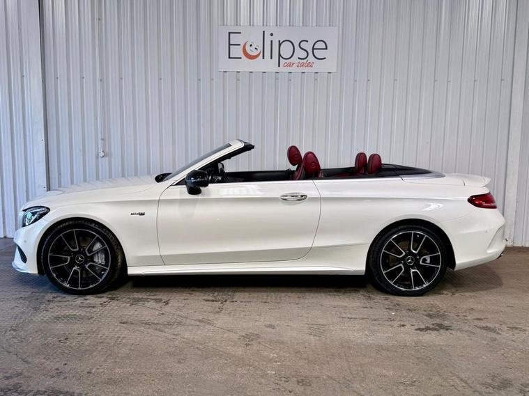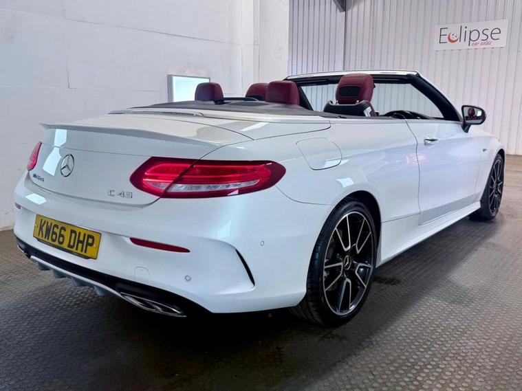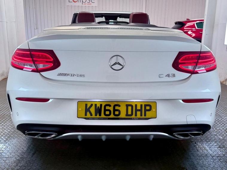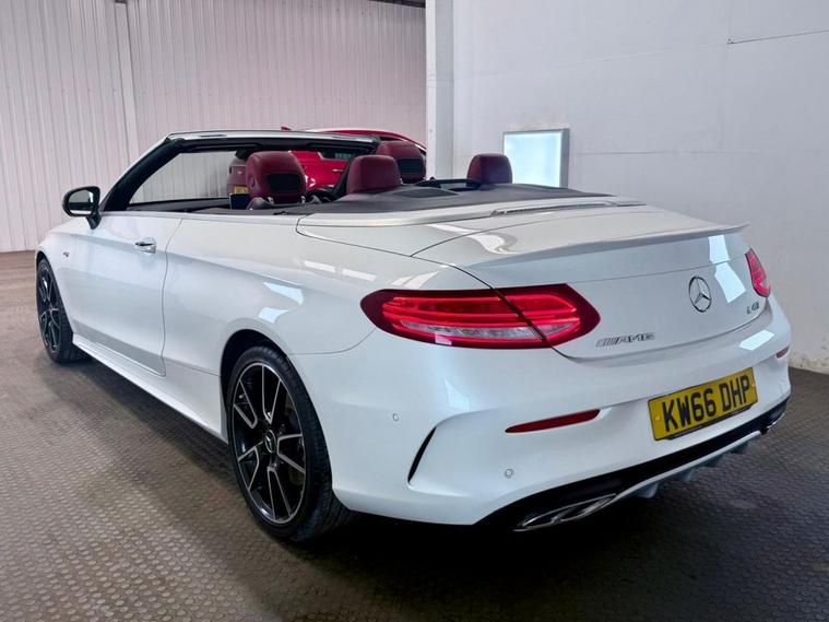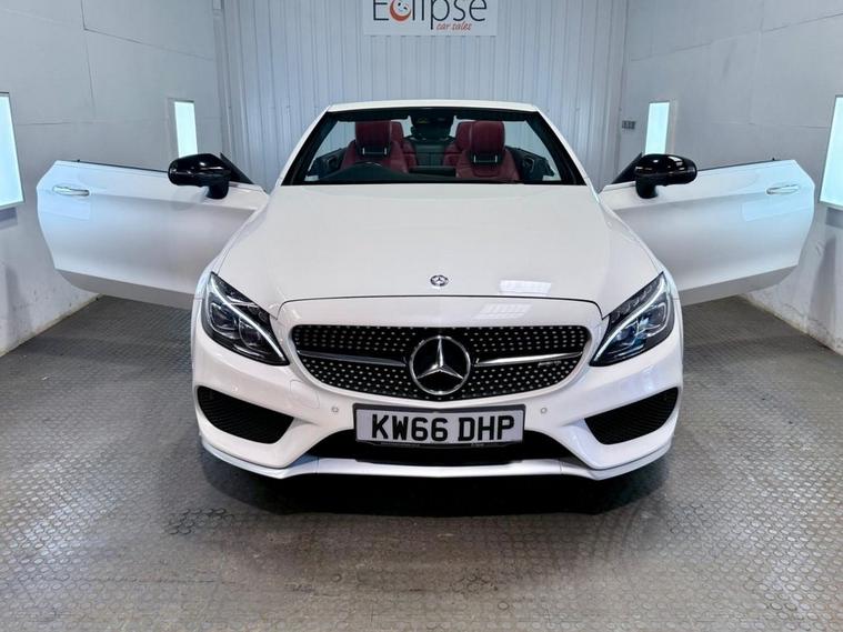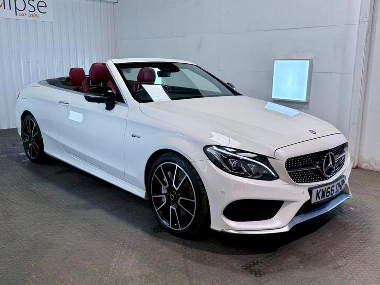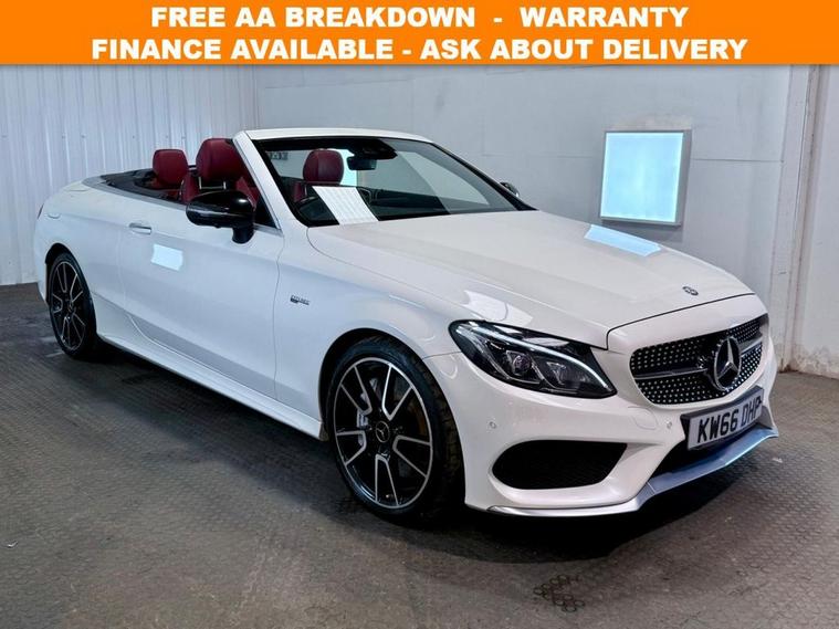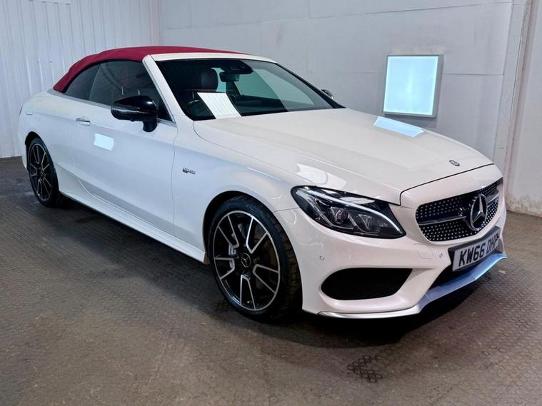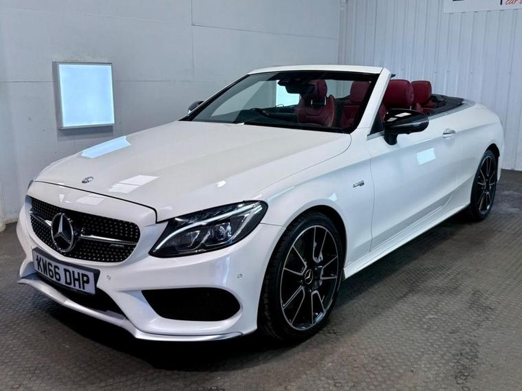 Mercedes-Benz C-Class 3.0 C43 V6 AMG (Premium Plus) Cabriolet first registered in December 2016. Finished in Polar White with a Cranbury Red Leather Interior, Red Soft Top and 19 inch Alloy Wheels. Spec Includes 360 Degree Parking Cameras | Reversing Camera with Front and Rear Sensors | Electric Heated Memory Front Seats | Satellite Navigation | Dual Zone Climate Control | Multifunction Steering Wheel | Cruise Control with Speed Limiter | DAB Radio | Bluetooth Connectivity | Switchable Exhaust System | Configurable Drive Modes | Electric Roof | Airscarf Neck Heaters | Electrically Adjustable and Folding Door Mirrors | Ambient Lighting | Automatic High Beam control | Premium Sound System. Serviced at 32997 Miles | 44788 Miles | 58363 Miles | 67740 Miles | 75640 Miles | 83089 Miles. MOT due February 2027