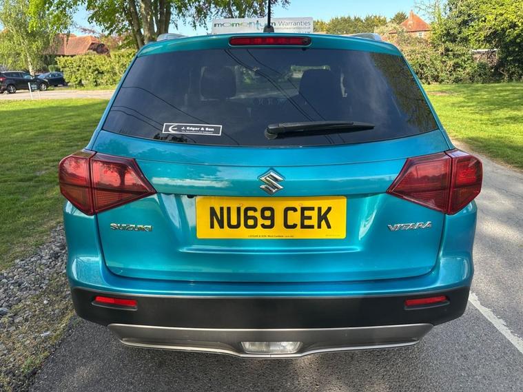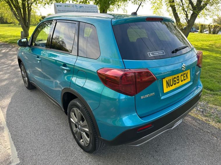 Discover this 2019 Suzuki Vitara SZ T, a well presented example ready for its next adventure. This model is powered by an efficient 1.4 litre petrol engine, meeting Euro 6 emission standards. It comes equipped with practical silver roof rails, stylish black wheel arch and lower side trims, and a convenient sunvisor ticket holder. For your connectivity needs, it features Bluetooth connectivity, and for added safety, it includes side airbags. The Suzuki Vitara SZ T offers a responsive drive, achieving 0 to 60 miles per hour in just 9.5 seconds. This performance, combined with its low CO2 emissions, indicates that this vehicle offers a more economical and environmentally conscious driving experience compared to many others in its class.