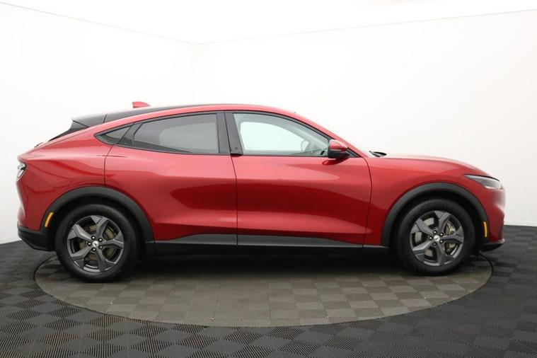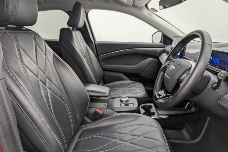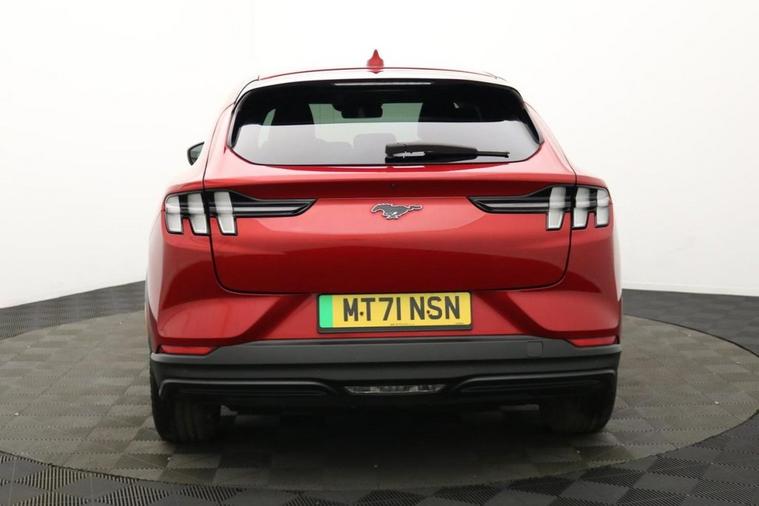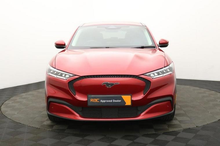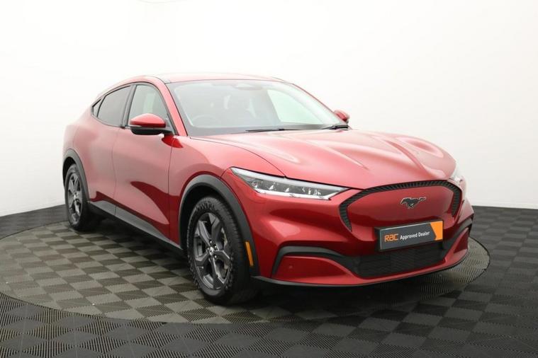 Henson Car Store presents the FORD MUSTANG MACH-E Standard Range 70kWh SUV 5dr Electric Automatic (269 ps) finished in Red. This 2021 Ford Mustang Mach-E Standard Range has been cherished by just one owner since new. This electric vehicle boasts a 76 kWh battery, offering a maximum range of 273 miles when new. For convenience, a full charge at home using a 7kW charger takes approximately 11 hours and 24 minutes, while rapid public charging can take the battery from empty to 80% in as little as 43 minutes. Inside, youll find a host of advanced features including front and rear parking sensors with parking assistance, LED reflector headlamps, and SYNC with connected navigation and natural voice search, complete with Bluetooth connectivity. The adaptive cruise control with stop and go and lane centering, along with dual zone electronic automatic temperature control, further enhance the driving experience. The Mustang Mach-E stands out with its impressive performance, accelerating from 0 to 60mph in just 6.9 seconds, demonstrating its dynamic capabilities. This swift acceleration, combined with its electric powertrain and comprehensive feature set, positions it favourably against other vehicles in its class, offering a blend of efficiency, technology, and engaging driving dynamics for the modern motorist. Stock Number 123
