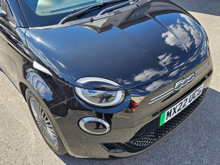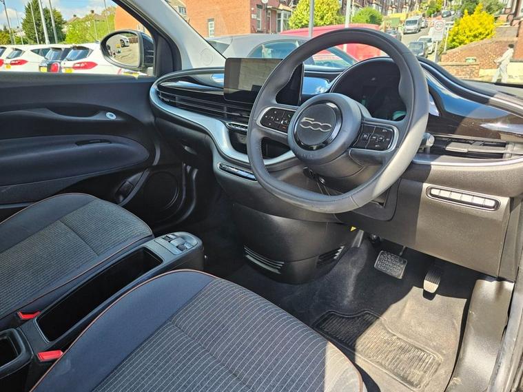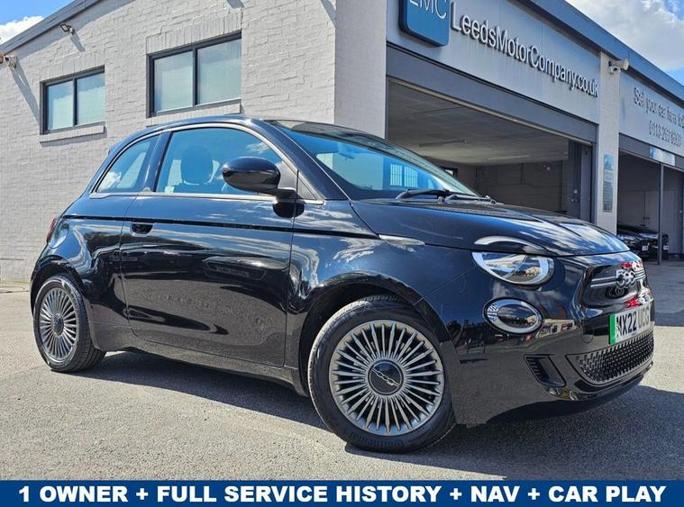 1 OWNER FROM NEW Fiat 500E electric AUTO in Onyx Black complimented by 16inch multi-spoke alloys. Excellent condition inside and out with great spec level. Spec includes rear parking sensors, Apple car Play / Android Auto to seamless run music and SAT NAV, multi-function steering, trip computer, Cruise Control, Bluetooth, USB input, Remote central locking with 2 keys, Air Con and much more. Call 01138032273 or visit dealer's website