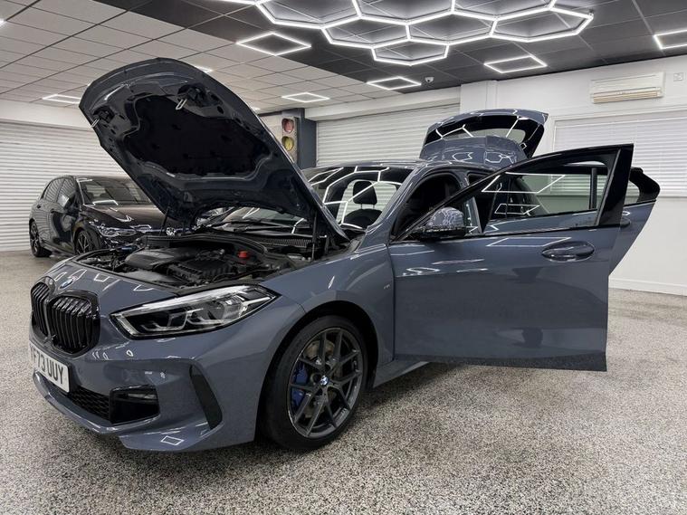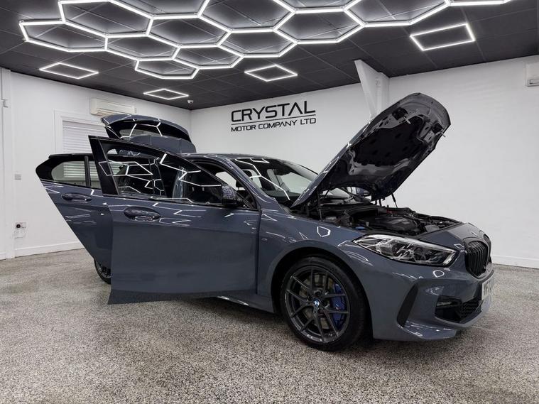 Crystal motor company are delighted to offer for sale this beautifully presented 2023 BMW 1 SERIES 1.5 118i M Sport (LCP) Hatchback 5dr Petrol DCT Euro 6 (s/s) (136 ps) finished in STORM BAY. This car comes with TWO KEYS, ONE FORMER KEEPER, SERVICE HISTORY. This car is equipped with 18 ALLOY WHEELS, M SPORT BRAKES, FRONT AND REAR PARKING SENSORS, REAR PRIVACY GLASS, ELECTRIC FOLDING WING MIRRORS, PART LEATHER SEATS, HEATED FRONT SEATS, PADDLE SHIFT, CRUISE CONTROL, VIRTUAL COCKPIT, HARMAN KARDON, AMBIENT LIGHTING (6 COLOUR CHOICE), DAB RADIO, BLUETOOTH AUDIO, BLUETOOTH PHONE CONNECTION, SATNAV, APPLE CARPLAY, ANDROID AUTO. The car is 100% HPi clear. Part exchange and finance are available and all major credit and debit cards accepted. Crystal Motor Company Ltd Used Programme includes a full PDI inside and out, MOT, mileage certificate and a full inside and out valet. You can request a personalised video with attention given to any specifics you would like a better view of and we will be pleased to assist you. Likewise, we offer our customers a free collection service. Our journey began in 1996 with the aim to deliver the best possible customer experience, you will enjoy a completely hassle free approach, no pressure and great prices, values we stand by to this day. Looking to finance your next car? We have over 30 lenders on board to help each customer with their financial circumstance. Every vehicle benefits from a minimum of 3 months warranty with the option to extend to 6/12/24/36 months.