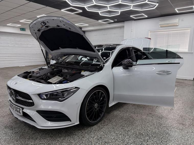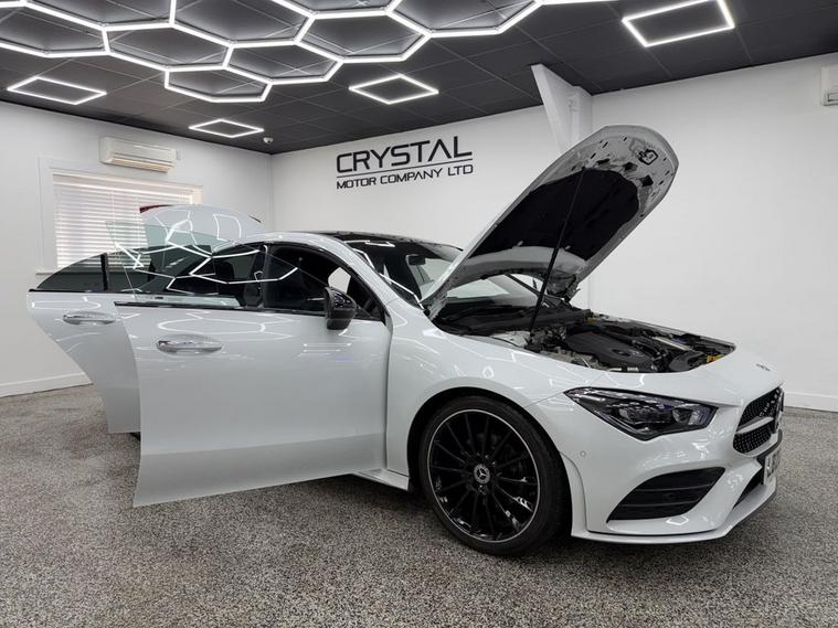 Crystal motor company are delighted to offer for sale this beautifully presented 2023 MERCEDES-BENZ CLA 1.3 CLA180 AMG Line Night Edition (Premium Plus) Coupe 4dr Petrol 7G-DCT Euro 6 (s/s) (136 ps) finished in WHITE. This car comes with TWO KEYS, ONE OWNER FROM NEW, FULL MERCEDES SERVICE HISTORY. This car is equipped with 19 ALLOY WHEELS, FRONT AND REAR PARKING SENSORS, REAR REVERSING CAMERA, ELECTRIC FOLDING WING MIRRORS, OPENING PANORAMIC ROOF, MULTIBEAM LED HEADLIGHTS, PART LEATHER SEATS, ELECTRIC MEMORY FRONT SEATS, HEATED FRONT SEATS, PADDLE SHIFT, CRUISE CONTROL, VIRTUAL COCKPIT, AMBIENT LIGHTING (64 COLOUR CHOICE), DAB RADIO, BLUETOOTH AUDIO, BLUETOOTH PHONE CONNECTION, SATNAV, APPLE CARPLAY, ANDROID AUTO. The car is 100% HPi clear. Part exchange and finance are available and all major credit and debit cards accepted. Crystal Motor Company Ltd Used Programme includes a full PDI inside and out, MOT, mileage certificate and a full inside and out valet. You can request a personalised video with attention given to any specifics you would like a better view of and we will be pleased to assist you. Likewise, we offer our customers a free collection service. Our journey began in 1996 with the aim to deliver the best possible customer experience, you will enjoy a completely hassle free approach, no pressure and great prices, values we stand by to this day. Looking to finance your next car? We have over 30 lenders on board to help each customer with their financial circumstance. Every vehicle benefits from a minimum of 3 months warranty with the option to extend to 6/12/24/36 months.
