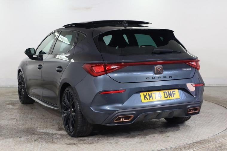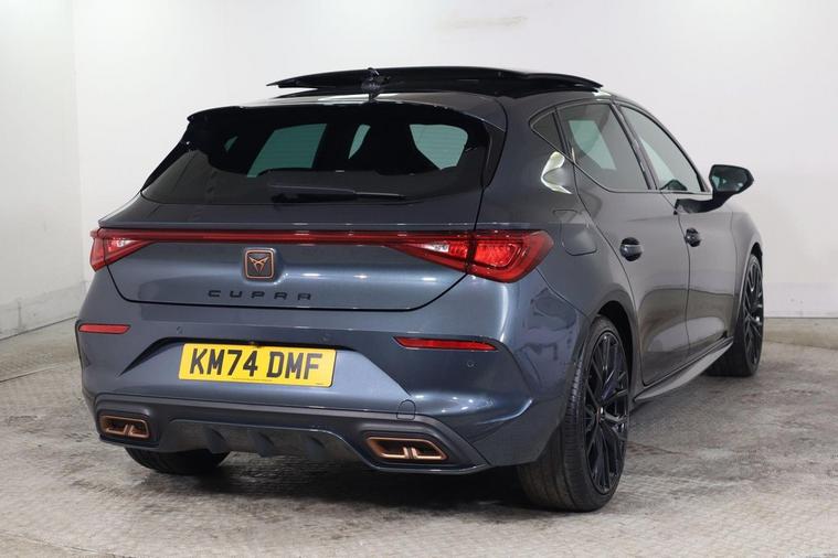 This 2024 CUPRA Leon eHybrid VZ2 Design Edition is a superb example, having had only one owner since new. This striking model boasts a 1.4 litre petrol plug in hybrid engine, meeting Euro 6 emission standards. Inside, youll find a host of convenient features designed to enhance your driving experience, including a rear view camera with parking assistance, a wireless phone charger, and a CUPRA leather flat bottomed, heated, and perforated steering wheel complete with gearshift paddles. Connectivity is seamless thanks to Full Link smartphone integration, supporting both Android Auto and Apple CarPlay, and the Media System Plus comes equipped with navigation and Bluetooth. The performance of this CUPRA Leon is truly impressive, accelerating from 0 to 62 miles per hour in just 6.7 seconds, showcasing its dynamic capabilities. This swift acceleration demonstrates a level of responsiveness that sets it apart from many other vehicles in its class. The combination of its efficient hybrid powertrain, advanced technology, and engaging driving dynamics makes this VZ2 Design Edition a compelling choice for those seeking a premium and spirited driving experience.
