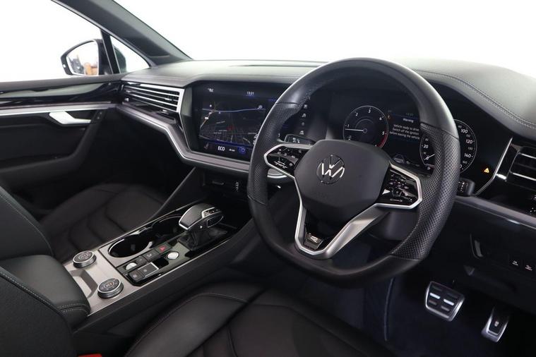 This 2023 Volkswagen Touareg TDI V6 Black Edition is a superb example, having had only one owner from new. This impressive SUV boasts a powerful 3.0 litre diesel engine paired with Four Wheel Drive, ensuring capability in all conditions. As a Euro 6 compliant vehicle, it meets modern emission standards. The Black Edition trim adds a distinctive style, and youll appreciate the convenience of 4Zone Climate Control, Keyless Entry with a hands free tailgate, and a dedicated storage compartment for wireless smartphone charging. Navigating tight spots is made easy with Park Assist and the Area View camera system, offering a 360 degree perspective. Plus, the opening panoramic sunroof floods the cabin with light, enhancing the spacious feel. The Touareg TDI V6 Black Edition offers a compelling blend of performance and practicality. Its acceleration from 0-62mph in just 6.3 seconds demonstrates its dynamic capability, outperforming many similar vehicles. The substantial towing weight of 3500 kg makes it ideal for those needing to tow caravans or trailers. Furthermore, the generous boot space provides ample room for luggage or shopping, a significant advantage over its competitors. This vehicle also benefits from a low insurance group, making it an economical choice for everyday driving.