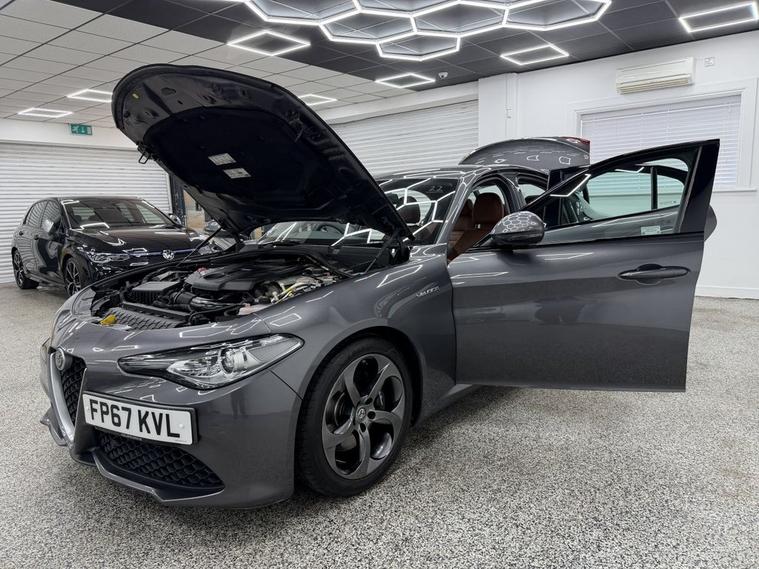 Crystal motor company are delighted to offer for sale this beautifully presented 2017 ALFA ROMEO GIULIA 2.0T Veloce Saloon 4dr Petrol Auto Euro 6 (s/s) (280 ps) finished in GREY. This car comes with TWO KEYS, TWO FORMER KEEPERS, SERVICE HISTORY. This car is equipped with 18 ALLOY WHEELS, FRONT AND REAR PARKING SENSORS, ELECTRIC FOLDING WING MIRRORS, LEATHER INTERIOR, ELECTRIC FRONT SEATS, MEMORY DRIVERS SEAT, HEATED FRONT SEATS, PADDLE SHIFT, CRUISE CONTROL, HEATED STEERING WHEEL, DNA DRIVING MODE, DAB RADIO, BLUETOOTH AUDIO, BLUETOOTH PHONE CONNECTION, SATNAV. The car is 100% HPi clear. Part exchange and finance are available and all major credit and debit cards accepted. Crystal Motor Company Ltd Used Programme includes a full PDI inside and out, MOT, mileage certificate and a full inside and out valet. You can request a personalised video with attention given to any specifics you would like a better view of and we will be pleased to assist you. Likewise, we offer our customers a free collection service. Our journey began in 1996 with the aim to deliver the best possible customer experience, you will enjoy a completely hassle free approach, no pressure and great prices, values we stand by to this day. Looking to finance your next car? We have over 30 lenders on board to help each customer with their financial circumstance. Every vehicle benefits from a minimum of 3 months warranty with the option to extend to 6/12/24/36 months.