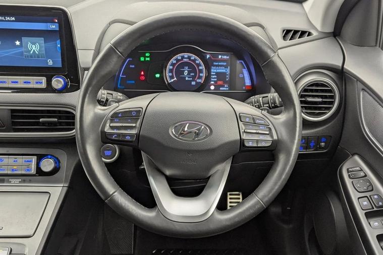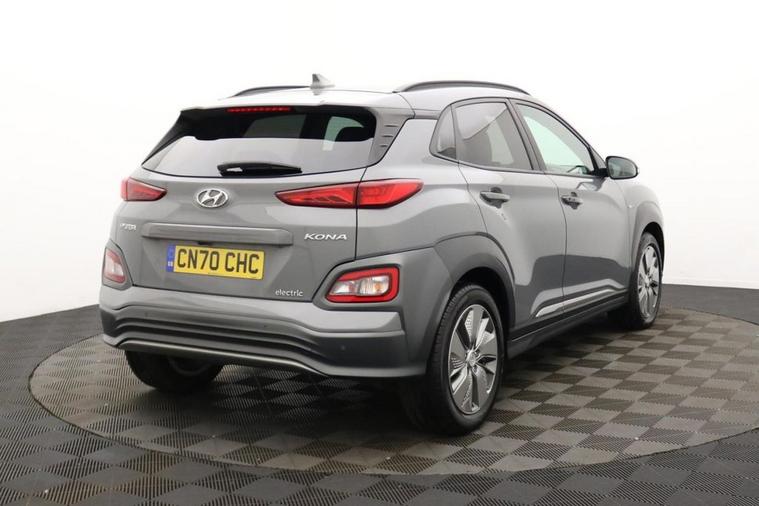 Henson Car Store presents the HYUNDAI KONA 64kWh Premium SE SUV 5dr Electric Auto (7kW Charger) finished in Grey. The 2020 Hyundai Kona 64kWh Premium SE is a highly sought-after all-electric SUV, offering impressive range, strong performance, and a premium level of specification. Powered by a 64kWh battery paired with a 204PS electric motor, it delivers smooth, instant acceleration and a quiet, refined driving experience, with 060 mph in under 8 seconds. With a real-world range of around 270300 miles on a full charge, this Kona is perfect for both daily commuting and longer journeys, helping to eliminate range anxiety while keeping running costs low. This model comes equipped with a 7kW onboard charger, allowing a full charge at home in approximately 910 hours, while rapid public charging can take the battery to around 80% in just over an hourideal for drivers on the go. As the range-topping Premium SE trim, it boasts an excellent level of specification, including a digital driver display, touchscreen infotainment system with Apple CarPlay and Android Auto, heated seats and steering wheel, head-up display, and premium audio system. Comfort and convenience are further enhanced with keyless entry, wireless phone charging, and adaptive cruise control. Safety is a key highlight, with advanced driver assistance systems such as lane keep assist, blind spot monitoring, autonomous emergency braking, and rear cross traffic alert providing added confidence on every journey.