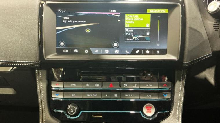 This 2020 Jaguar F PACE D180 Chequered Flag is a superb example of this popular model. It features a powerful yet efficient 2.0 litre diesel engine paired with a smooth four wheel drive system, ensuring confident performance in all conditions. This Euro 6 compliant vehicle also boasts a generous towing weight of 2400 kg, making it a versatile choice. Notable features include auto dimming, power fold, and heated door mirrors with approach lights, 20 inch alloy wheels in a stylish gloss black finish, and the convenient Activity Key. Experience impressive acceleration with a 0 to 60 mph time of just 8.4 seconds, demonstrating its dynamic capability. Inside, you will find the premium Meridian Sound System, delivering 380W of immersive audio, and seamless Bluetooth connectivity for your devices. The F PACE also offers substantial boot space, providing ample room for luggage or shopping. These elements combine to offer a superior driving experience compared to other vehicles in its class.