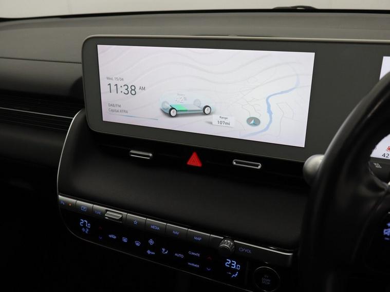This 2022 Hyundai IONIQ 5 Premium is a superb example, having had only one owner since new and boasting an MOT valid until March 2027, offering excellent peace of mind. This electric vehicle features a substantial 73 kWh battery, providing a maximum range of 298 miles when new. Inside, youll find a host of convenient features designed for comfort and connectivity, including heated front seats, dual zone climate control for personalised comfort, and Bluetooth connectivity with voice recognition. For your convenience, it also includes a wireless phone charging pad and seamless phone connection with Android Auto. The IONIQ 5 Premium stands out with its impressive performance and practicality. Its 0-60mph acceleration in just 7.4 seconds demonstrates its responsive power, while the large boot space ensures you have ample room for luggage or shopping. Charging is also remarkably efficient, with a full charge at home taking approximately 10 hours and 53 minutes using a 7kW charger, and a rapid charge from empty to 80% achievable in a swift 17 minutes at a public charging station. These capabilities highlight how this IONIQ 5 offers a superior electric driving experience compared to many other vehicles.