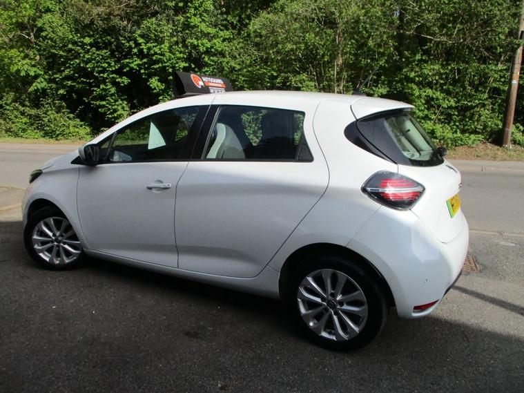HERE WE HAVE A STUNNING 1 OWNER 71 PLATE ELECTRIC RENAULT ZOE R110 52KWH ICONIC RAPID CHARGE AUTOMATIC 5DR IN PEARL WHITE.THE CAR COMES WITH ALL HANDBOOKS- SERVICE HISTORY-HPI CLEAR-2 KEYS STILL UNDER MANUFACTURES WARRANTY WITH A1 BATTERY HEALTH REPORT !! IDEAL TOWN CAR OR DAILY COMMUTER.IF BUYING THROUGH BUSINESS IT IS VAT QUALIFYING SO YOU CAN CLAIM BACK VAT !!! GREAT SPEC ON THIS FACELIFT VERSION WITH LARGE SCREEN DISPLAY AND INCLUDES ALLOY WHEELS-SAT NAV-AIR CON-ELECTRIC WINDOWS/MIRRORS-REVERSING CAMERA-KEYLESS ENTRY-BLUETOOTH-CRUISE CONTROL-PRIVACY GLASS-PARKING SENSORS FRONT AND BACK-DAYTIME RUNNING LIGHTS-ISOFIX-START/STOP-STEERING WHEEL CONTROLS-LANE ASSIST- TRACTION CONTROL ETC. THE INTERIOR IS HALF LEATHER SIDES WITH GREY CLOTH WHICH IS UNMARKED. THE CAR DRIVES LIKE NEW AND ALL TEST DRIVES ARE WELCOME.WE OFFER GREAT FINANCE PACKAGES AND WE ALSO ACCEPT P/EX.THE CAR COMES WITH 1 YEARS FREE AA BREAKDOWN COVER AND A MINIMUM OF 3 MONTHS WARRANTY !!