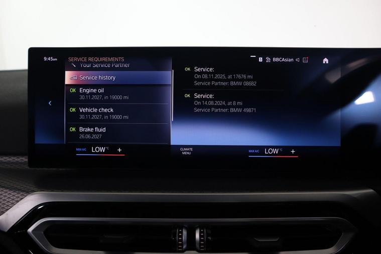 This 2024 BMW 3 Series 320i M Sport is a superb example, having had only one owner since new. This Euro 6 compliant model boasts a 2.0L petrol engine and comes in the desirable M Sport trim. Inside, youll find comfortable seat heating for both the driver and front passenger, perfect for colder mornings. The BMW Live Cockpit Plus with Bluetooth connectivity keeps you informed and entertained, while the automatic air conditioning ensures a pleasant cabin temperature. Navigating tight spaces is made easier with the Parking Assistant, which includes front and rear sensors, along with a rear camera. The LED headlights provide excellent visibility, enhancing safety and the cars modern appearance. This particular 3 Series also benefits from a low insurance group, making it an economical choice for many drivers. These features collectively demonstrate how this BMW 3 Series offers a refined and convenient driving experience, setting it apart from other vehicles in its class.