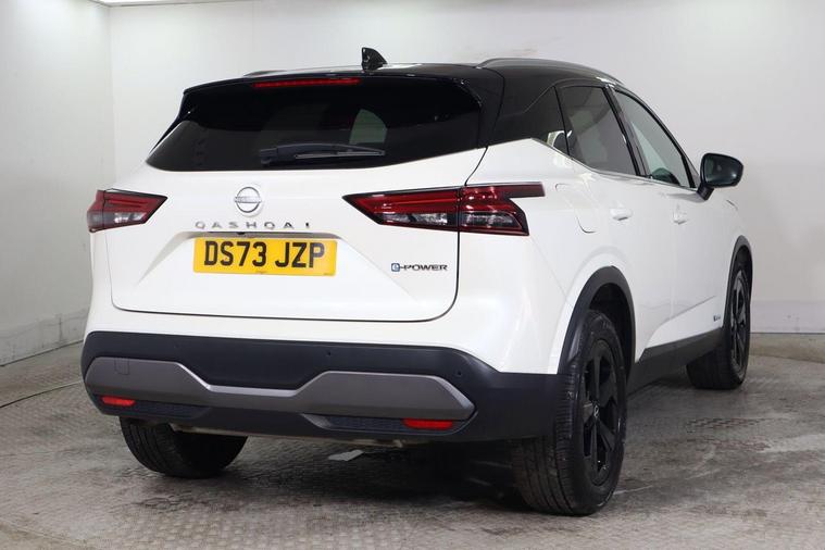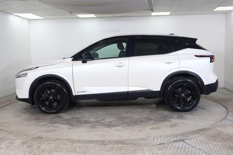 This 2023 Nissan Qashqai h e-POWER Kuro Edition boasts a pristine provenance, having had only one owner and a clear vehicle history check, with its MOT valid until October 2026. This stylish Kuro Edition features a 1.5 litre petrol hybrid engine, meeting Euro 6 emissions standards. Youll find convenience with front and rear parking sensors, a wireless phone charger, and Bluetooth with audio streaming. The car also benefits from LED headlights for enhanced visibility. Experience impressive performance with an acceleration of 0-62mph in just 7.9 seconds, while enjoying excellent fuel economy of 54 mpg, indicating its more efficient than many comparable vehicles. This Qashqai also offers low CO2 emissions, making it an environmentally conscious choice. Its last service was completed on 21st April 2026 at 41, 988 miles, and it provides ample storage with its large boot space, perfect for all your needs.