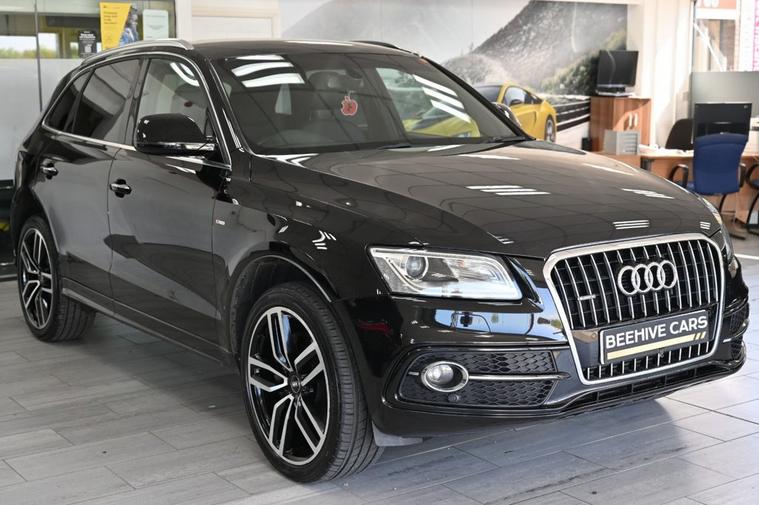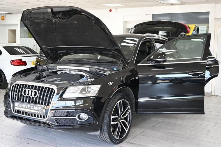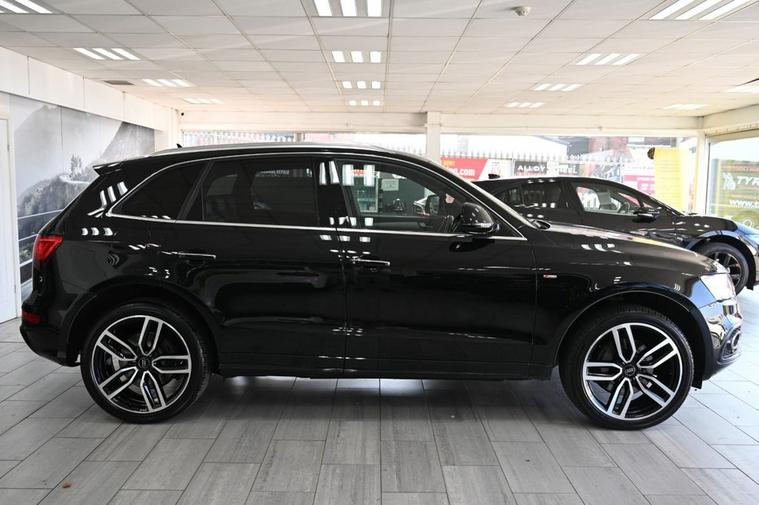 DRIVE AWAY TODAY OR HOME DELIVERY TO YOUR DOORSTEP FINANCE & PART EXCHANGE ARRANGED ONLINE** 7 DAY MONEY BACK GUARANTEE** Lovely spec Audi Q5 3.0 tdi v6 quattro s-line plus s-tronic in metallic black with service history sat nav audi multimedia dab radio bluetooth media bang olufsen surrond sound full black s-line leather seats with armrest heated seats electric heated folding door mirrors front & rear parking aid sensors xenon lights flat bottom s-line steering wheel with f1 style paddleshifts electric push bottim start stop electric push button tailgate alloys privacy