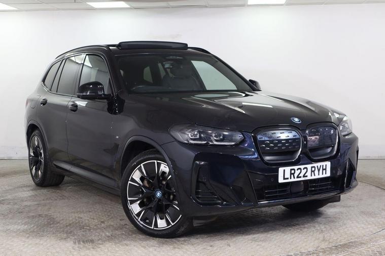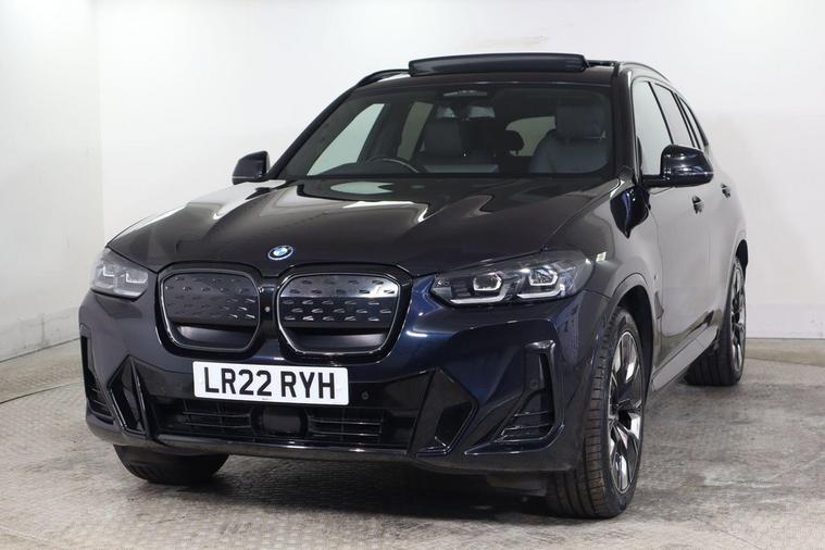 This 2022 BMW iX3 M Sport Pro is a superb example, having had only one owner since new. As an electric vehicle, it offers a smooth and quiet driving experience, powered by an 80 kWh battery that provides a maximum range of 282 miles when new. This M Sport Pro variant comes equipped with a host of desirable features, including a fully electric towbar, a Head Up Display for convenient information access, automatic air conditioning for optimal comfort, heated seats for both the driver and front passenger, and a premium Harman Kardon loudspeaker system for an immersive audio experience. The BMW iX3 M Sport Pro stands out with its impressive performance, achieving 0-62mph in just 6.8 seconds, demonstrating its dynamic capability. Its electric powertrain ensures efficient running, with a full charge at home on a 7kW charger taking approximately 11 hours and 20 minutes, and a rapid public charge from empty to 80% achievable in as little as 32 minutes. Furthermore, this model boasts a large boot space, offering practicality for everyday use and longer journeys, making it a compelling choice for those seeking a premium electric SUV.