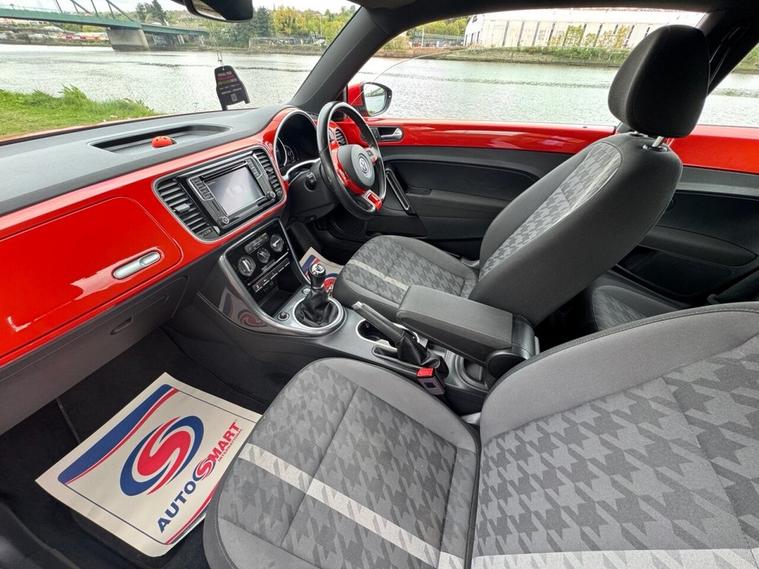 **STUNNING AND RARE HABANERO ORANGE VW BEETLE DESIGN TECH WITH A BLACK CONTRAST ROOF, FRONT AND REAR PARKING SENSORS, CRUISE CONTROL, WINTER PACK AND MUCH MUCH MORE - THIS IS A STUNNING CAR**