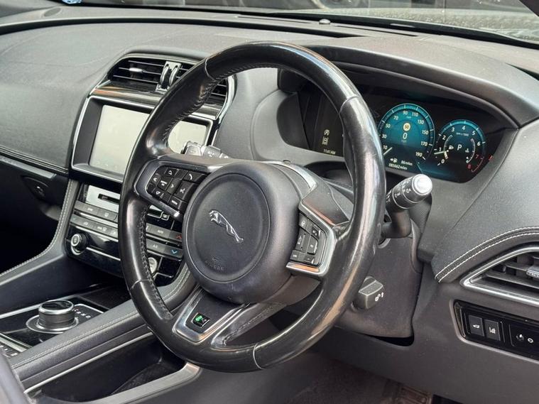 This 2017 Jaguar F-PACE P250i R-Sport boasts a full dealership service history and a clear vehicle history check, offering peace of mind alongside its impressive performance. This Four Wheel Drive model features a 2.0 litre petrol engine, meeting Euro 6 emissions standards, and is equipped with striking Xenon headlights with LED signature and dual tailpipes with a 75mm finish. Inside, youll find convenient 2-Zone Climate Control and Bluetooth telephone connectivity, all housed within a spacious boot perfect for your needs. The F-PACE P250i R-Sport accelerates from 0-60mph in a swift 6.4 seconds, demonstrating its dynamic capability. This performance, combined with its Euro 6 compliance and a substantial towing weight of 2400 kg, sets it apart from many other vehicles in its class. With an MOT valid until September 2026, this R-Sport trim level offers a compelling blend of luxury, practicality, and driving enjoyment.