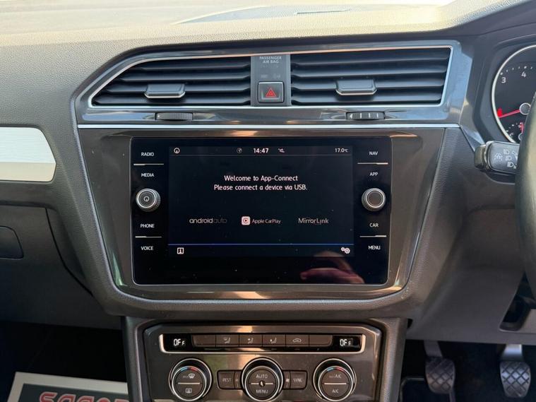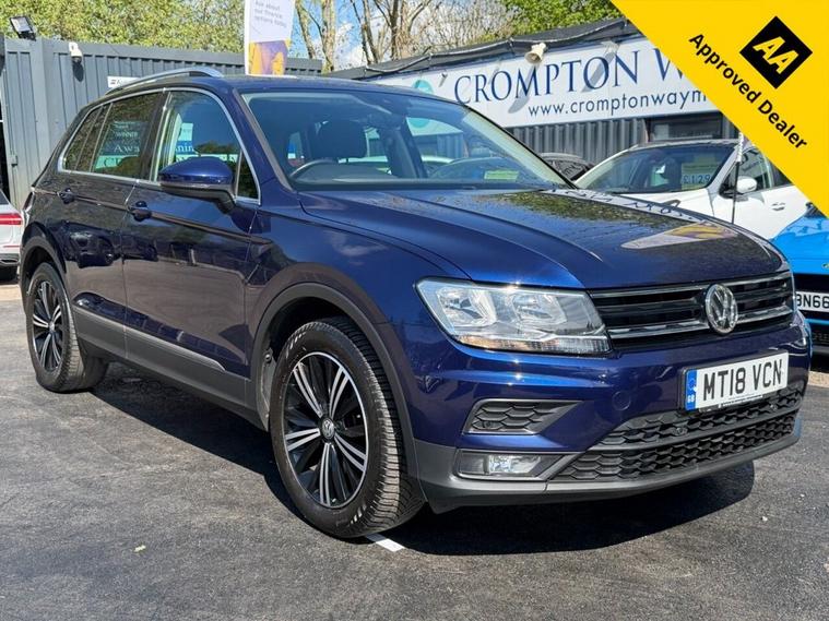 This 2018 Volkswagen Tiguan TSI SE Navigation presents a superb example with exceptionally low mileage for its age, having covered just 53, 515 miles. This Euro 6 compliant 1.4 litre petrol model boasts a full dealership service history, ensuring its provenance is well documented. It comes with a 6 month warranty for your peace of mind, and a 12 month MOT will be provided upon purchase. Inside, youll find a wealth of technology including Adaptive Cruise Control, Car Net App Connect with Android Auto and Apple CarPlay, and a Composition Media System with Bluetooth connectivity. The SE Navigation trim also features a 3Zone Electronic Climate Control for personalised comfort and a Dusk Sensor for automatic activation of driving lights. This Tiguan stands out with its impressive fuel economy, achieving an excellent 46 miles per gallon, and its low CO2 emissions, which are better than many similar vehicles. Furthermore, its low insurance group rating indicates that running costs are kept to a minimum, making it an economical choice. These highlights collectively demonstrate the Tiguans appeal as a practical, efficient, and well maintained SUV.