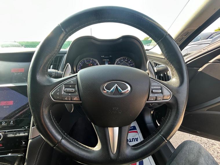 With only 56, 405 miles on the clock, this 2016 Infiniti Q50 offers an exceptional opportunity to own a car with very low mileage for its age. This d Sport variant comes in a Sport trim and is powered by a 2.2L diesel engine, which meets Euro 6 emission standards. You can drive away with peace of mind, thanks to the 6-month warranty, a clear vehicle history check, and a full service history. The car's roadworthiness is confirmed with an MOT valid until October 2025. Inside, you'll find LED headlights, front seats with memory function, a leather steering wheel, an aluminium footrest, and a leather gear shift lever.This Infiniti Q50 stands out with its impressive fuel economy of 61 mpg, meaning lower running costs compared to similar vehicles. It also benefits from a low insurance group, which can save you money on your annual premiums. This combination of economy and comprehensive features makes the Infiniti Q50 a smart choice for discerning drivers..