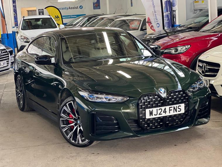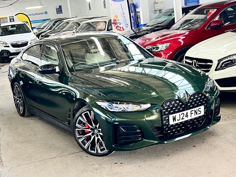 With only one previous owner and a clear vehicle history check, this 2024 BMW 4 Series Gran Coupe M440i is a superb example of a performance vehicle. Featuring a 3.0L Petrol Hybrid engine and Four Wheel Drive, this Euro 6 compliant car is presented with low mileage for its age, having travelled only 8000 miles. The vehicle is equipped with the Comfort Plus Package, which includes Keyless Entry, Seats with Memory function, and a Heated Steering Wheel. The additional Visibility Pack enhances the driving experience with LED and Laser Headlights.The BMW Individual Aerodynamic 20in Alloy Wheels in Bi-Colour Midnight Grey complement the BMW Individual High-Gloss Shadowline with Extended Contents. The large boot space makes this vehicle practical, and the Wireless Charging Tray, including Wireless Phone Charging, adds a touch of modern convenience. The impressive acceleration, achieving 0-62mph in just 4.7 seconds, demonstrates how this vehicle offers enhanced performance compared to similar models..