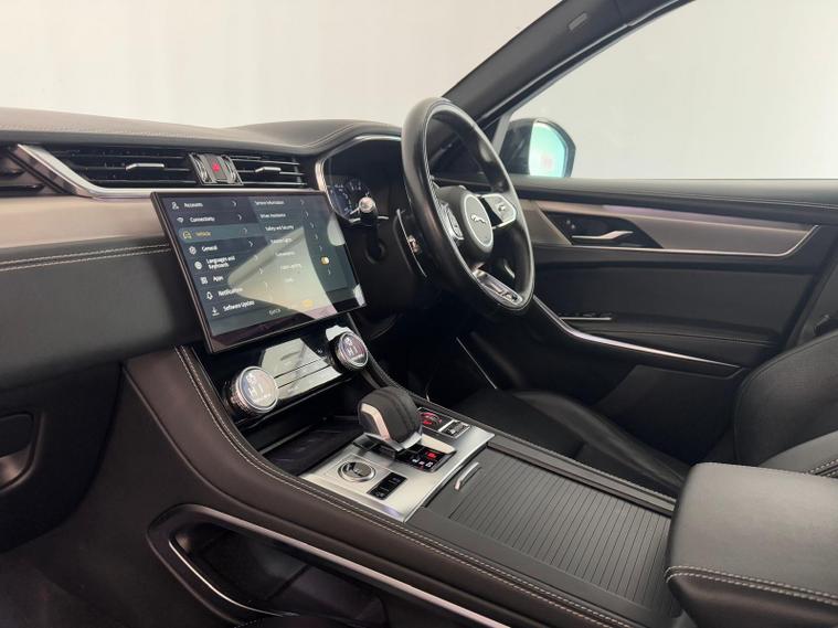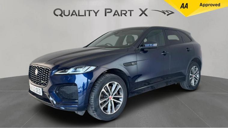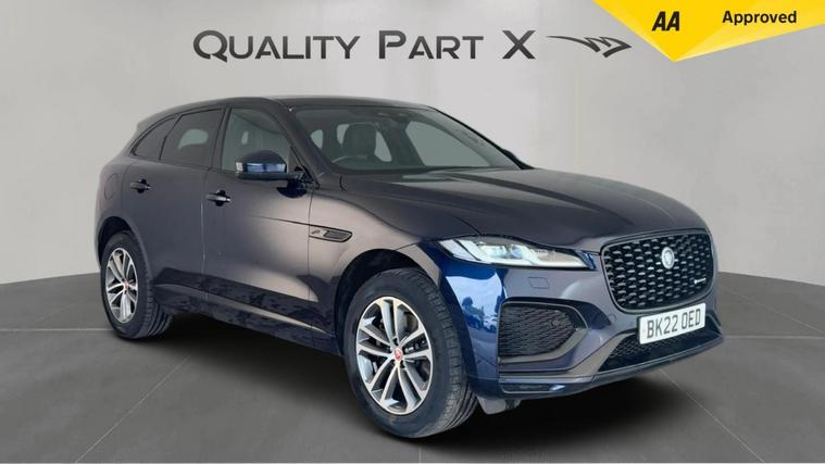 With only one previous owner, this 2022 Jaguar F-PACE P250i R-Dynamic S is a sophisticated SUV that combines performance with practicality. The R-Dynamic S trim complements the vehicle's sleek design, while the 2.0L petrol engine and four-wheel drive drivetrain ensure a responsive and confident driving experience. This Euro 6 compliant vehicle has a MOT valid until May 2026 and service history. Enjoy modern conveniences such as the reverse parking camera, satellite navigation, Bluetooth connectivity, and Apple Car Play/Android Auto. The 12-way heated electric front seats, heated steering wheel as well as the front and rear parking sensors, add to the comfort and ease of driving.The Jaguar F-PACE boasts a large boot, making it more practical than similar vehicles in its class. The vehicle can tow up to 2400 kg, offering added versatility. Acceleration from 0-60mph in just 6.9 seconds demonstrates its sporty character, setting it apart from other SUVs..