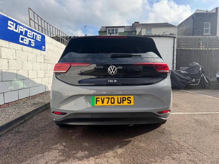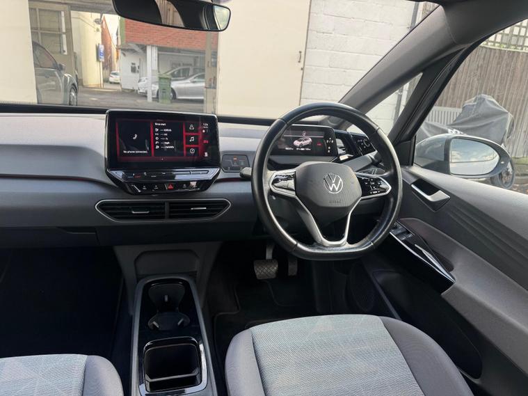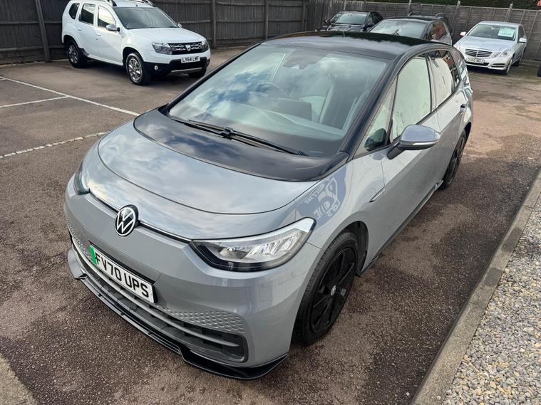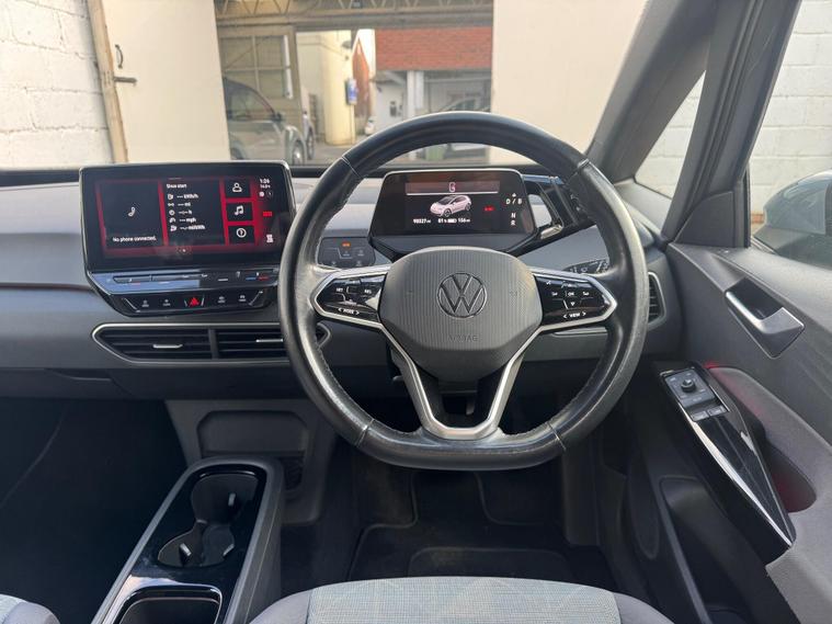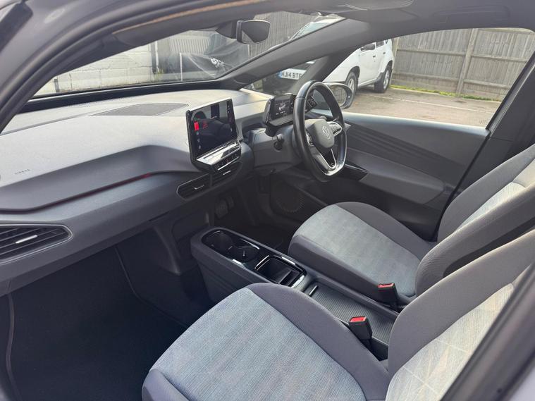 This 2020 Volkswagen ID.3 Pro Performance Life, with a clean vehicle history check, offers peace of mind for its next owner. As an all-electric vehicle, this ID.3 combines efficiency with modern technology. The Life trim includes a Comfort Package, featuring heated seats and a heated steering wheel, perfect for those chilly mornings. The 1-Zone Climatronic system ensures a comfortable cabin environment, while front and rear parking sensors make navigating tight spots a breeze. All-LED headlights with reflector technology provide excellent visibility, and carpet mats in the front and rear add a touch of practicality.The ID.3 boasts a large boot space, making it more practical than other similar vehicles. The battery has a total capacity of 62 kWh, offering a maximum range of 263 miles when new, so you can undertake longer journeys with confidence. Charging is convenient, with a full charge at home taking 9 hours 30 minutes using a 7kW charger. For quicker top-ups, public charging can take you from empty to 80% in just 37 minutes. Acceleration from 0-62mph takes only 7.3 seconds, making it quicker than other similar vehicles..
