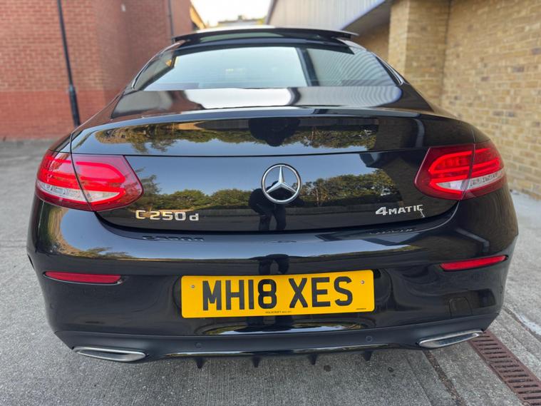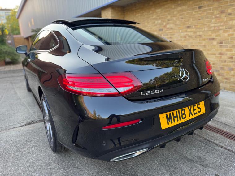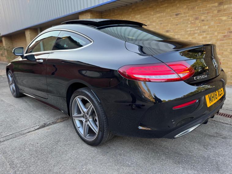 With only two previous owners and full dealership service history, this 2018 Mercedes-Benz C250d AMG Line is a superb example of a well-maintained vehicle. The C Class combines luxury and performance, and this AMG Line trim elevates the experience with its sporty styling and premium features. The 2.1L diesel engine delivers a smooth and efficient drive, while the four-wheel drive system provides enhanced stability and control in various conditions. Inside, you'll find black leather upholstery and heated front seats for added comfort. The THERMATIC automatic climate control ensures a pleasant environment for both driver and passengers, and parking is made easy with active parking assist, including PARKTRONIC and a reversing camera. This vehicle also meets Euro 6 emission standards.This particular model stands out with its very low mileage of just 39, 000 miles for its age, and its last service was as recent as May 2025. A new owner can drive away with peace of mind, thanks to the included 6-month warranty and 12 months MOT provided on purchase. The vehicle history check is clear, adding further reassurance. The impressive fuel economy of 59 mpg means fewer trips to the petrol station, and the rapid acceleration, achieving 0-62mph in just 6.9 seconds, makes it quicker than other similar vehicles. Plus, the large boot space offers practicality for all your storage needs..