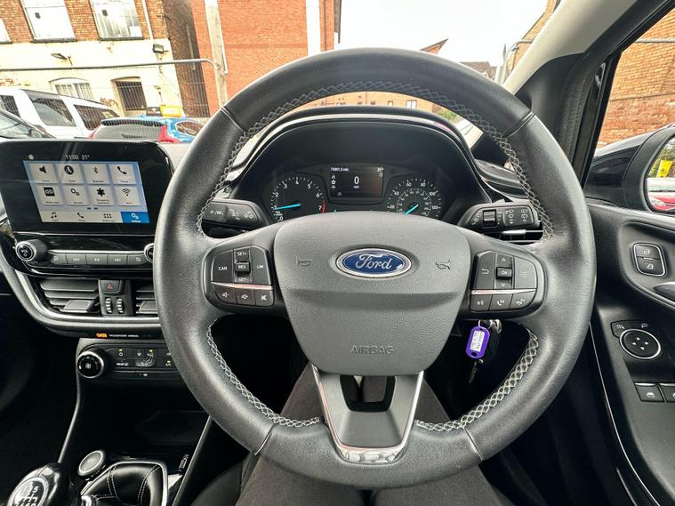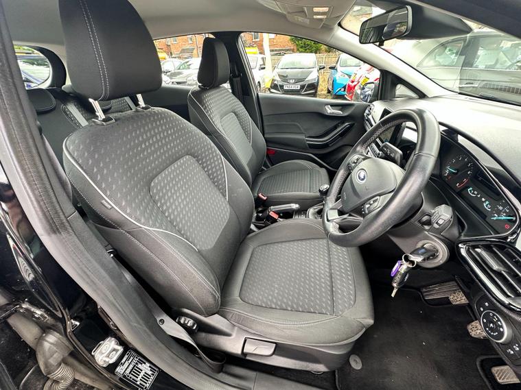 3 MONTH NATIONAL WARRANTY WITH AA COVER INCLUDED, 4 Stamps in the HISTORY plus freshly serviced here with NEW 2026 MOT. This Panther Black just 1 owner Fiesta 1.0 , Huge spec with APPLE CARPLAY, alloys, LEDs etc etc is an ideal first car as it's a cheap to insure stylish car that will make you smile each time you drive it, is of course HPI clear and is still a great little car! At The Oaks Motor Company, we are a family-run business and aim to please with around 60 cars in daily stock. Let us know how we can help and we'll get you moving! Appointments at a time to suit you including out-of-hours. Part exchanges a pleasure..