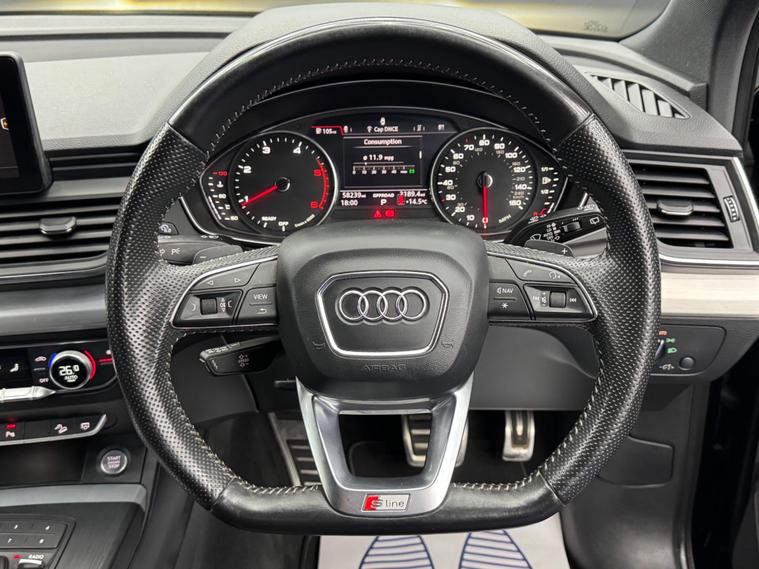 Here at Motor Gurus we are delighted to offer an Audi Q5 2.0 TDI S line S Tronic quattro. This vehicle is in immaculate condition inside and out. This specific vehicle is finished in a GLOSS BLACK and is matched with a BLACK PART LEATHER interior. This vehicle comes included with: FRONT & REAR PARKING SENSORS, CRUISE CONTROL, AUTOMATIC HEADLIGHT CONTROL, TWIN CUPHOLDERS, KEYLESS START, FRONT HEATED SEATS, CLIMATE CONTROL, DAB RADIO, BLUETOOTH AUDIO, TELEPHONE CONNECTIVITY, AUDI DRIVE SELECT AND MUCH MORE! Our Audi Q5 2.0 TDI S line S Tronic quattro has come to us with SERVICE HISTORY, 2 KEYS and is a 1 FORMER KEEPER FROM NEW! We will also provide this vehicle with a 12 MONTH MOT as well as a FRESH OIL SERVICE before it leaves our premises (OTR)..