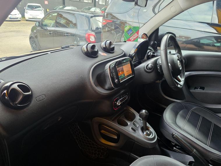 PARKING SENSORS, PANORAMIC ROOF, FULL LEATHER, HEATED SEATS, SATALIETTE NAVIGATION, AIR CONDITIONING, ULEZ COMPLAINT, HPI CLEAR, AUTOMATICWith a MOT valid until April 2026, 3 to 36 months warranty available , Drive away insurance available, in Greenford Perivale London, all major debit and credit card accepted, finance option available, dealer's website All Vehicles Are Subject To A £99.99 Administration Fees.this 2017 Smart fortwo 0.9L Petrol T Prime Sport in Prime Sport trim offers peace of mind for miles to come. This city-friendly vehicle combines practicality with a touch of luxury. The Cool and Audio Package, complete with automatic climate control and Bluetooth connectivity, ensures a comfortable and connected ride. Enjoy open skies with the panoramic roof with sun protection, while the Premium Equipment Line adds extra convenience with Bluetooth and rear parking sensors. Heated seats for both the driver and front passenger provide warmth on colder days, and automatic climate control maintains the perfect cabin temperature.This Smart fortwo stands out with its impressive fuel economy of 69 mpg, meaning fewer trips to the petrol station and more money in your pocket. The low CO2 emissions also mean that you'll be contributing to a cleaner environment. This combination of efficiency and features makes this Smart fortwo a smart choice for urban driving and beyond..