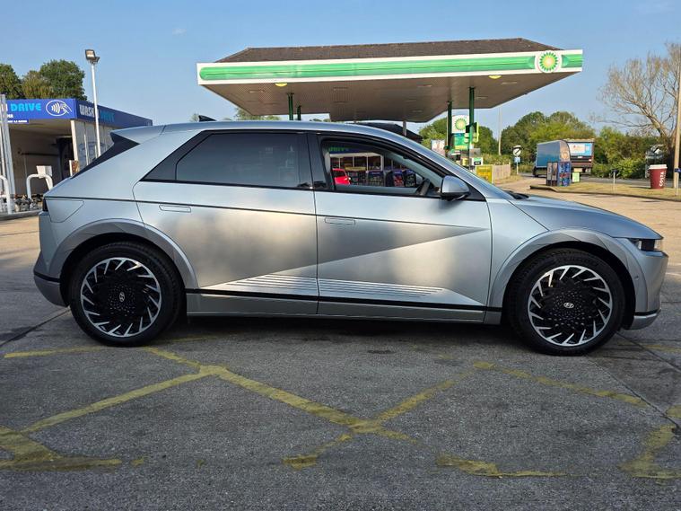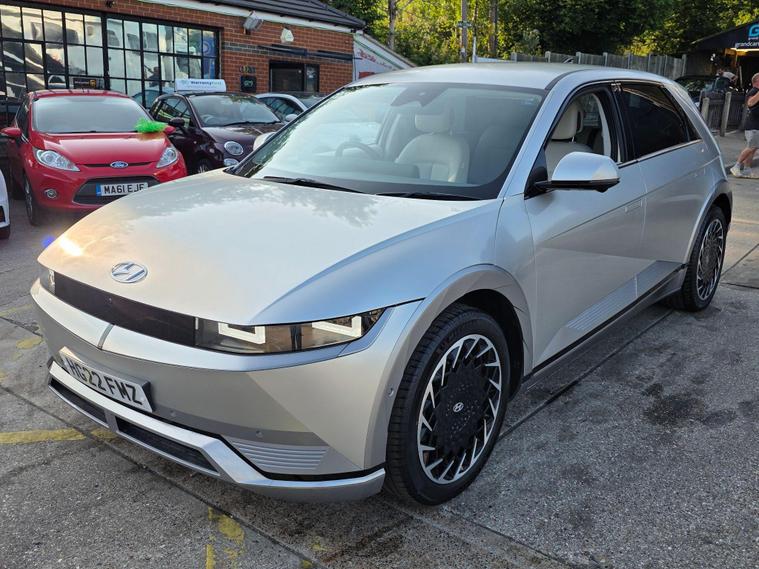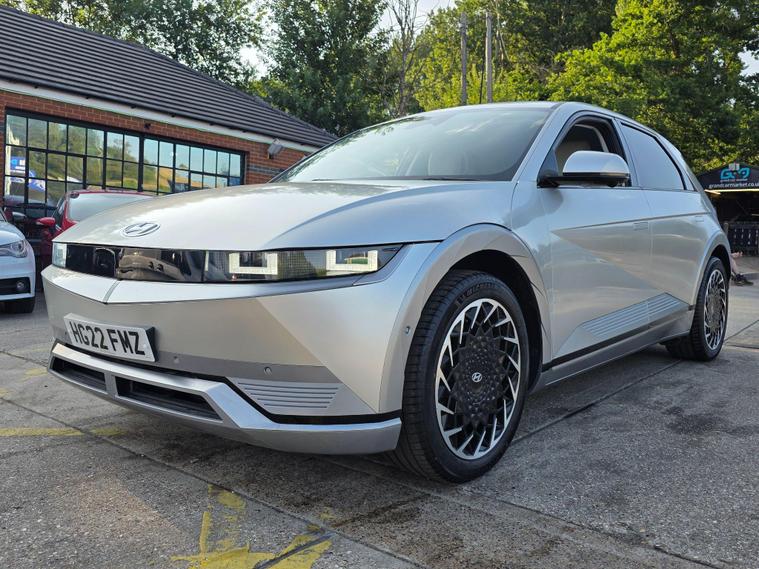 This 2022 Hyundai IONIQ 5 Ultimate is a standout electric vehicle, boasting exceptionally low mileage for its age, having covered just 10, 501 miles, and with only one owner from new. This Ultimate trim model features a substantial 73 kWh battery, offering a maximum range of 280 miles when new, ensuring you can travel further on a single charge. For convenience, a full charge at home using a 7kW charger takes approximately 10 hours and 53 minutes, while rapid public charging can replenish the battery from empty to 80% in a swift 17 minutes. The vehicle's MOT is valid until June 2026, providing peace of mind for the coming years.Experience a superior drive with the IONIQ 5 Ultimate, which offers impressive performance, accelerating from 0 to 62mph in just 7.4 seconds, a testament to its electric power. This model also includes desirable features that enhance your driving experience, such as Apple CarPlay for seamless phone integration, a heated steering wheel for comfort in colder weather, and a premium BOSE sound system with 7 speakers and a subwoofer for exceptional audio quality. Bluetooth connectivity with voice recognition allows for hands free calls and media control, while parking distance warning sensors at both the front and rear assist with manoeuvring. Furthermore, the IONIQ 5 provides ample practicality with its large boot space, making it a versatile choice for everyday use and longer journeys..