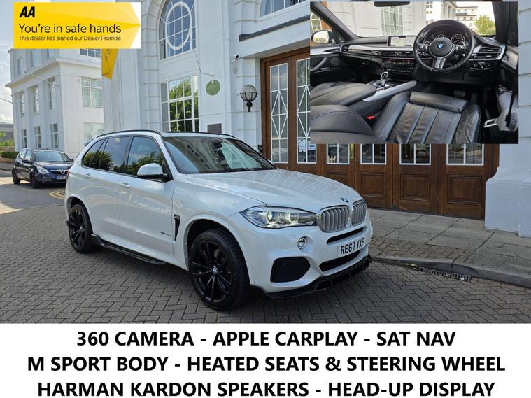 This High Spec BMW X5 comes with a MOT Till JUNE-2026 and a Fresh Service Completed. Auto House are proud to present this stunning Top of the Range BMW X5 fitted with 360 Camera, Head-Up Display, Lane Assist, M Sports Body, Heated Seats, Heated Steering Wheel, Harman Kardon Speakers, Advanced Comfort Seats, Cruise Control, Apple CarPlay, Sat Nav, Bluetooth.This excellent BMW is 100% HPI Clear and comes with 6 Months Warranty cover for your peace of mind, with the option to extend this, should you want to! We also offer finance! This BMW X5 was clearly her previous owner's pride and joy as it's excellent inside and this vehicle has flown through her most recent MOT and Every car that we sell goes through a rigorous inspection before it comes on sale. We take great pride in the quality of service we provide, and our customer satisfaction ratings prove this!Every effort has been made to ensure the accuracy of the information in this advert but errors may occur. Please check with a salesperson..