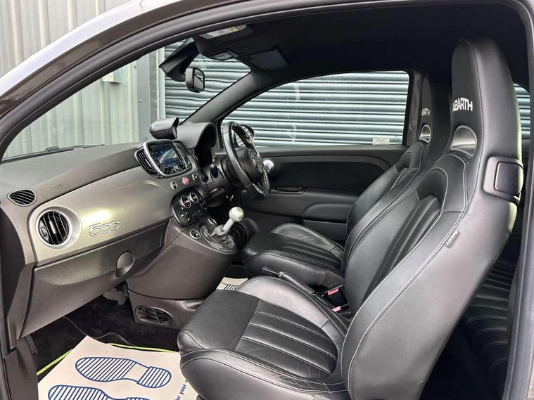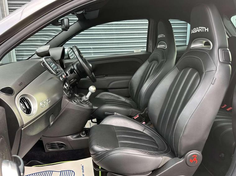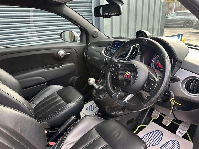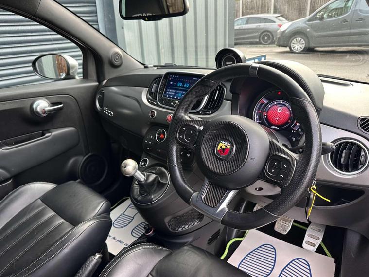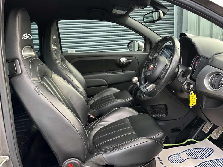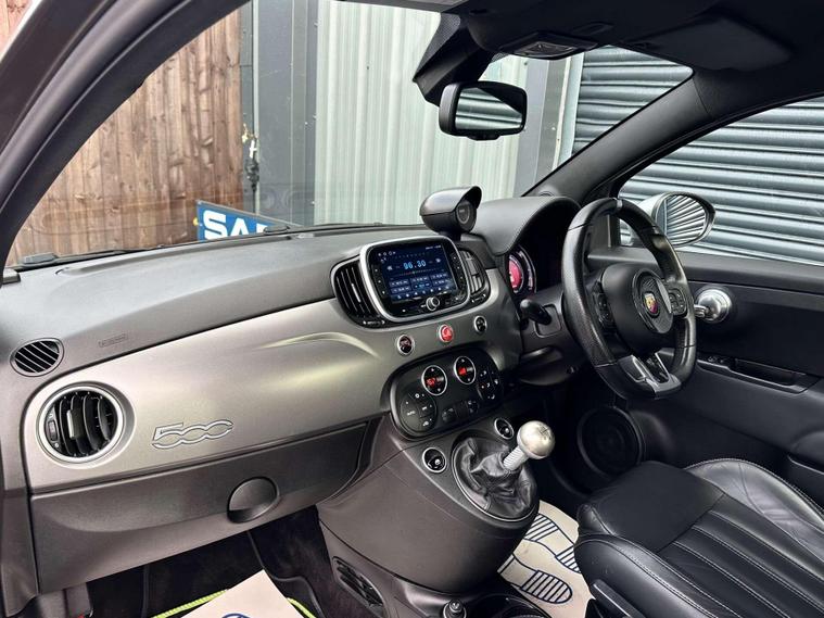 Abarth 595 1.4 T-Jet Turismo Hatchback 3dr Petrol Manual Euro 6 (165 bhp) ULEZ FREE. Finished in Record grey metallic grey with an anthracite roof lining and a black full lounge leather interior.17'' gloss black alloys, rear camera, Apple CarPlay, Android Auto, carbon steering wheel inlays, red sports calipers, DAB digital radio, Blue and me connection, dash rev counter, cruise control, air conditioning, multifunction steering wheel, AUX/USB connection, Bluetooth phone preparation, heated front windscreen windscreen, power controlled door mirrors, remote central locking, auto lights and wipers.Here at Saracen Motor Group we have been awarded AA Platinum dealership recognition along with being nominated for best customer service by Autotrader for 2021, 2022, 2023, 2024 & 2025. We are a 5-star dealership with over 600 5-star reviews across all internet platforms including Autotrader and have been regarded as one of the best dealerships to buy from in the UK.Our preparation inspected each vehicle to the highest level possible for it’s age and mileage. You can rest assure your next car has been cared for to the highest standard. Service history, V5 and the HPI certificate will all be present on viewing and collection. With our location based in Battlesbridge, Essex you can enjoy a haggle-free buying experience where you can drive away the same day if prior arranged, additional fees apply please see our website for details..