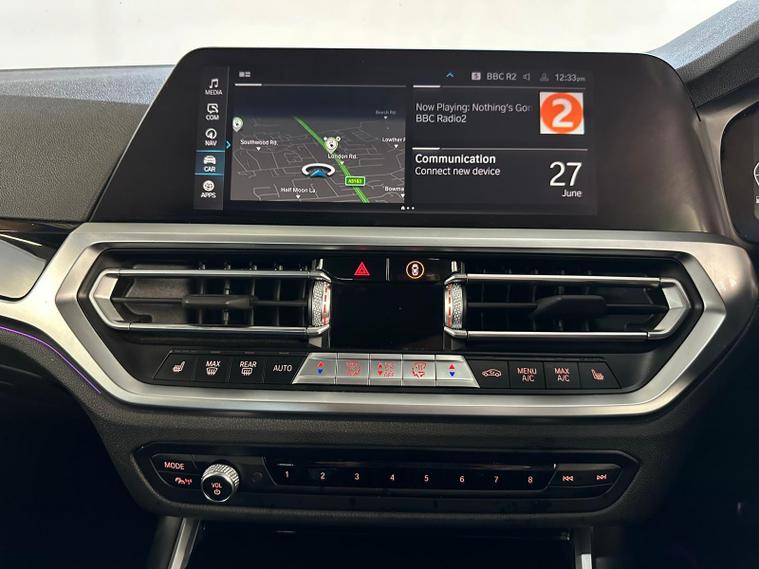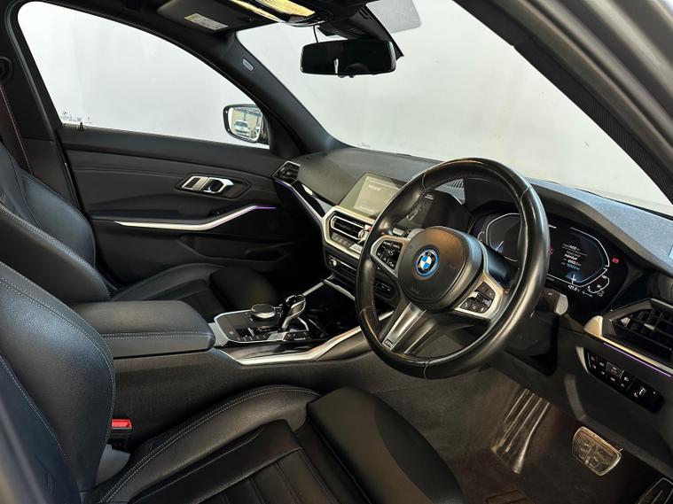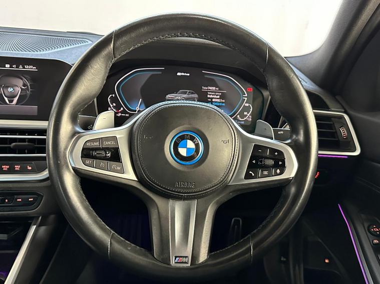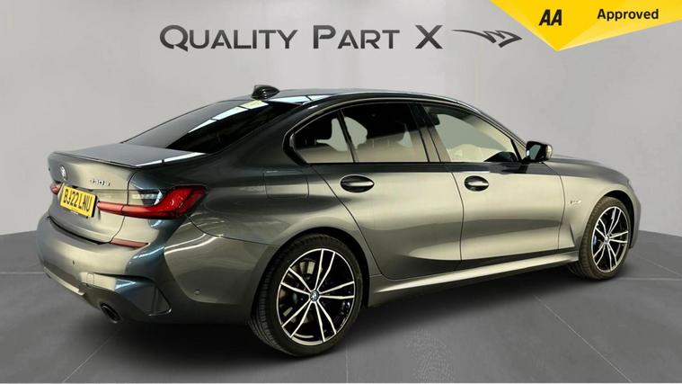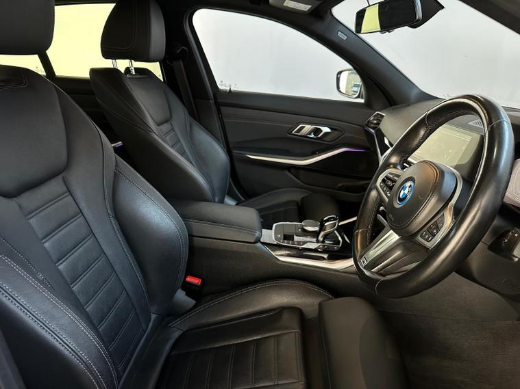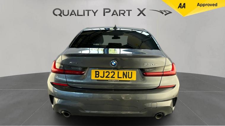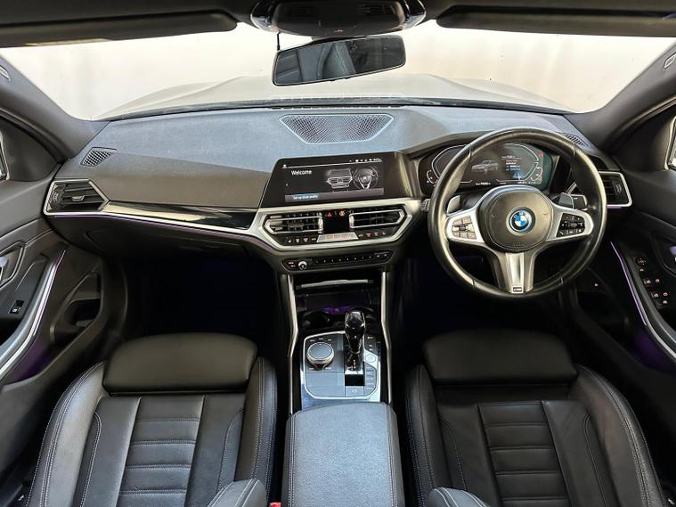 1 OWNER, REAR CAMERA, xDRIVE1 OWNER FROM NEW, - With only one previous owner, this 2022 BMW 3 Series 330e M Sport is a sophisticated saloon that combines performance with efficiency. The M Sport trim enhances the car's athletic appeal, while the four-wheel drive system ensures confident handling in various conditions. The vehicle is powered by a 2.0L Petrol Plug-in Hybrid engine and meets Euro 6 emission standards.Equipped with the M Sport Pro Package and BMW Individual Piano Black interior trim, this 3 Series offers a luxurious and comfortable driving experience. The automatic three-zone air conditioning, including climate control, ensures a pleasant environment for all occupants. Heated seats for the driver and front passenger add extra comfort during colder months. Adaptive LED headlights provide excellent visibility, further enhancing the driving experience. The car's ability to accelerate from 0-62mph in just 5.8 seconds demonstrates its impressive performance capabilities, setting it apart from other vehicles in its class.The vehicle also includes front and rear parking sensors, digital dash, ambient lighting, satnav and a reverse parking camera with park assist and reverse assistant..