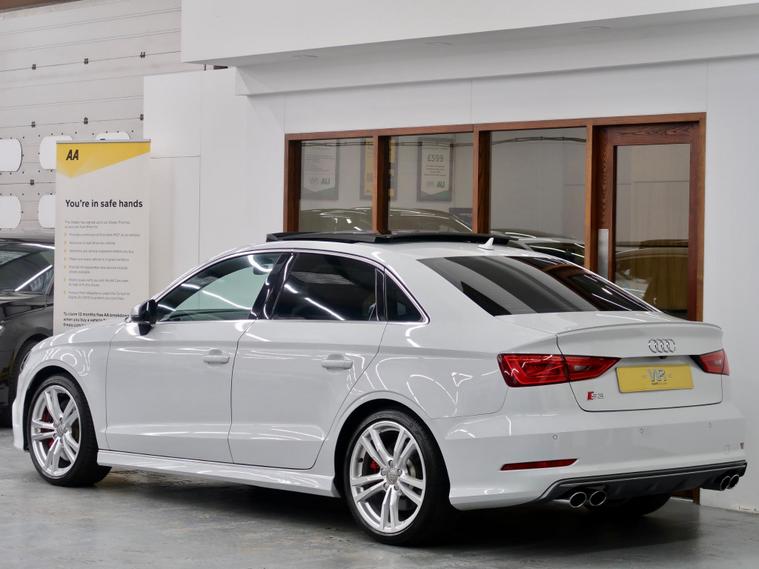 We are delighted to offer this fabulous 2015/65 Reg Audi S3 2.0 TFSI Sportback S Tronic Quattro S Tronic, This stunning vehicle is presented in a beautiful Ibis White, complemented by a contrasting Partial black leather Seats with complementing red stitching interior + Electric Seats + Full Audi history and comes with 2 keys. The vehicle is in excellent condition both inside and out and drives exceptionally well! HUGE SPECIFICATION INCLUDES: SAT NAV + Keyless Entry, Electric Sliding Panoramic Glass Sunroof + Satellite Navigation + Front and Rear Parking Sensors + Comfort and Sound Pack + Xenons headlights with Exterior lighting pack + Privacy Glass + Reverse Camera + Bang & Oulfsen Surround Sound System + RED brake calipers + Electric Folding/Heated Door Mirrors + 18'' AUDI ALLOYS. Why Choose Us? Family-run business established since 2000, Over two decades of motor trade experience Buy with complete confidence and peace of mind Feel free to read our 370+ Autotrader reviews! + Combined reviews of over 680+ online.
