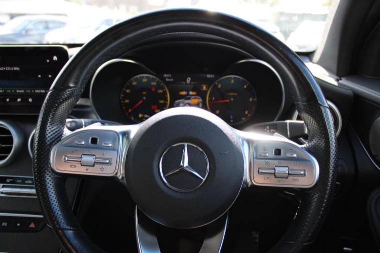 This 2021 Mercedes-Benz GLC300d AMG Line comes with a clear vehicle history check, offering you peace of mind. As part of the AMG Line trim, this GLC boasts a 2.0L diesel engine and a four-wheel drive system. The vehicle is also Euro 6 compliant. Experience open-air driving with the electric panoramic glass sunroof, which includes an opening panoramic sunroof. The KEYLESS-GO Comfort Package adds convenience with keyless entry. Enjoy a premium audio experience with the Burmester Surround Sound System. The exterior is enhanced by 20in alloy wheels with an AMG 5-Twin-Spoke design, finished in titanium grey with a high-sheen. Manoeuvring is made easy with Active Parking Assist, including PARKTRONIC, front and rear parking sensors.The large boot space makes this vehicle more practical than similar models, offering ample room for luggage and cargo. With a towing weight of 2500 kg, this vehicle is more than capable when compared to its competitors. Acceleration from 0-62mph in just 6.5 seconds means that this vehicle is quicker than others in its class..