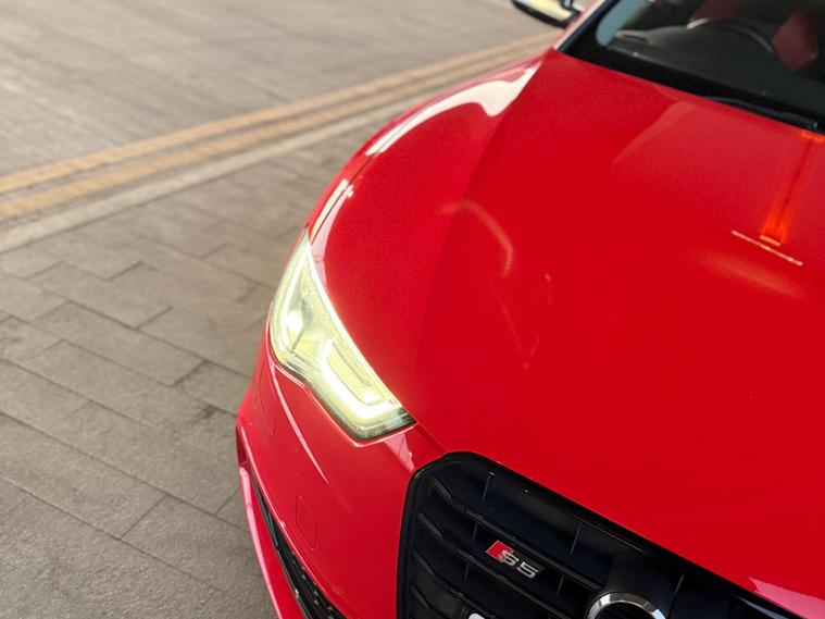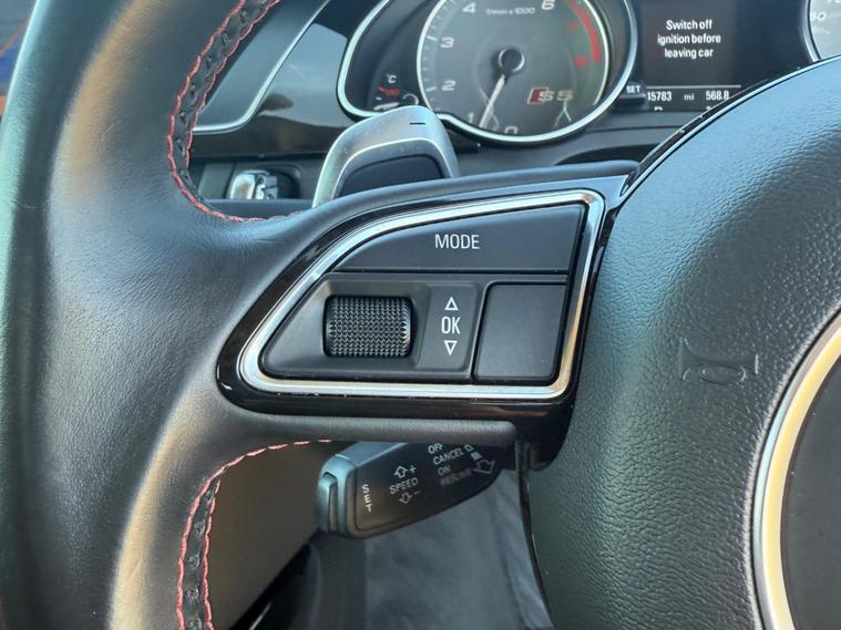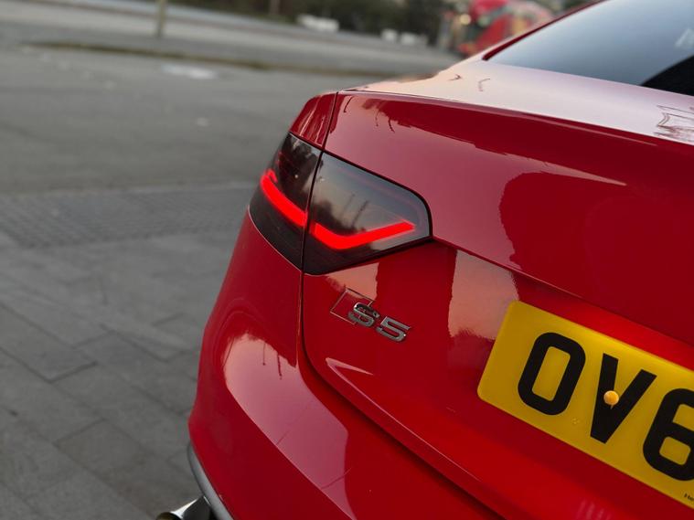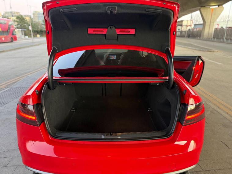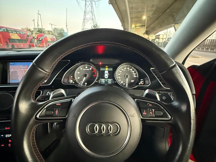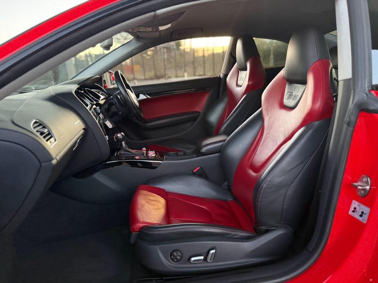 Boasting exceptionally low mileage for its age, this 2015 Audi S5 TFSI V6 Black Edition presents a remarkable opportunity. With only 49, 444 miles on the clock and an MOT valid until August 2026, this four wheel drive model comes with a full service history, assuring you of its excellent provenance. The sophisticated Black Edition trim is complemented by the Audi Exclusive Leather Package 1 in classic red Valcona leather, and features such as Advanced Key with keyless entry, mobile telephone preparation with Audi Connect and Bluetooth, and adaptive cruise control with brake guard.This Audi S5 is designed for both comfort and practicality. Enjoy the convenience of heated outer rear seats, ample boot space for all your needs, and a low insurance group, making it an economical choice. The powerful 3.0 litre petrol engine delivers an engaging driving experience, further enhanced by the car's advanced features. A three month warranty is also included, providing added peace of mind with this exceptional vehicle..