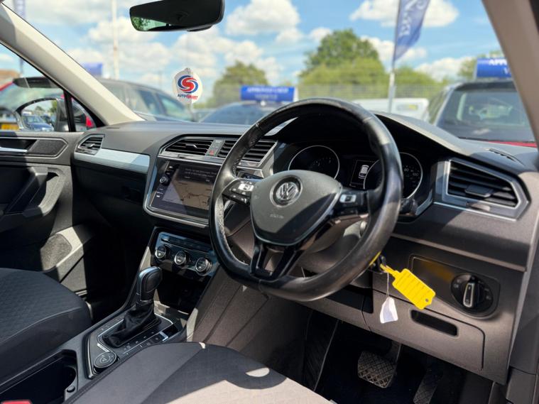 With only 38000 miles on the clock, just 2 owners from new and a full up to date service history, this 2017 Volkswagen Tiguan is a rare find. The SE Navigation trim combined with a 2.0L diesel engine and four-wheel drive offers a balanced driving experience. The vehicle is Euro 6 compliant and comes with a clear vehicle history check. Enjoy modern conveniences such as the Driver Profile Selection, offering Eco, Normal, and Sport modes to tailor your driving experience. Stay connected with Car-Net App Connect, which includes Android Auto and Apple CarPlay, and maintain a comfortable environment with 3Zone electronic air conditioning. The Composition Media System, complete with Bluetooth, ensures entertainment and connectivity on the go, while Adaptive Cruise Control enhances your driving experience. dealer's website Tiguan stands out with its large boot space, offering practicality and convenience. Benefit from low insurance costs, making it an economical choice. Furthermore, you can enjoy fuel economy of around 50 mpg, saving you money on fuel costs. With a towing capacity of 2200 kg, this Volkswagen Tiguan TDI SE Navigation is well-equipped for various tasks..