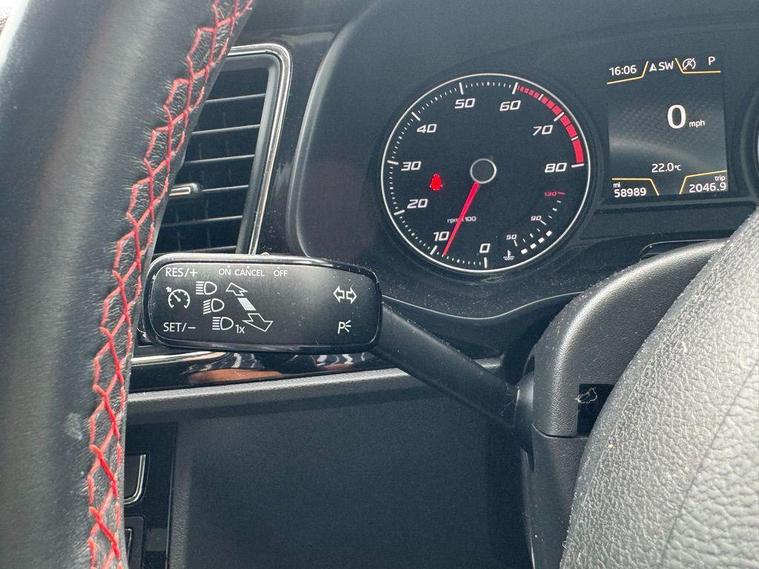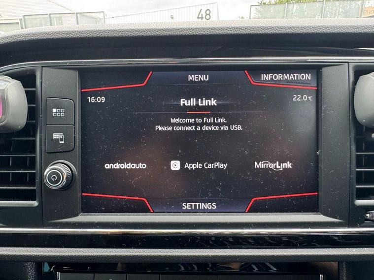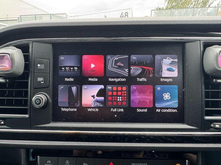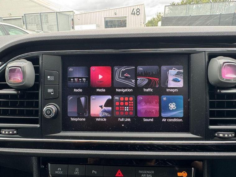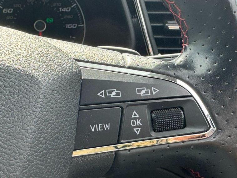- Steering Wheel - Flat-Bottomed Perforated Leather with Red Stitching and FR Logo