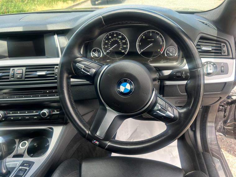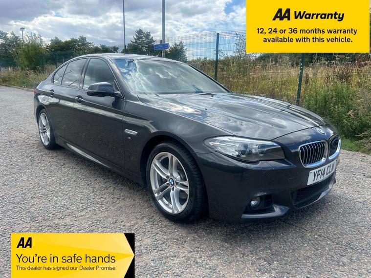 Experience refined motoring with this 2014 BMW 5 Series 520d M Sport, a stylish saloon that combines performance with practicality. The M Sport trim enhances the driving experience, offering a dynamic feel and sporty aesthetic. Equipped with a 2.0L diesel engine and meeting Euro 6 emission standards, this vehicle delivers a balance of power and environmental consciousness.This BMW 5 Series stands out with its impressive fuel economy of 63 mpg, meaning fewer trips to the petrol station compared to similar vehicles. The large boot space is another key advantage, offering ample room for luggage, shopping, or equipment. Enhanced Bluetooth telephone preparation with USB audio interface and voice control, front and rear park distance control, Bluetooth hands-free with USB audio interface, and xenon headlights add convenience and safety to every journey. Front park distance control further simplifies parking in tight spots..