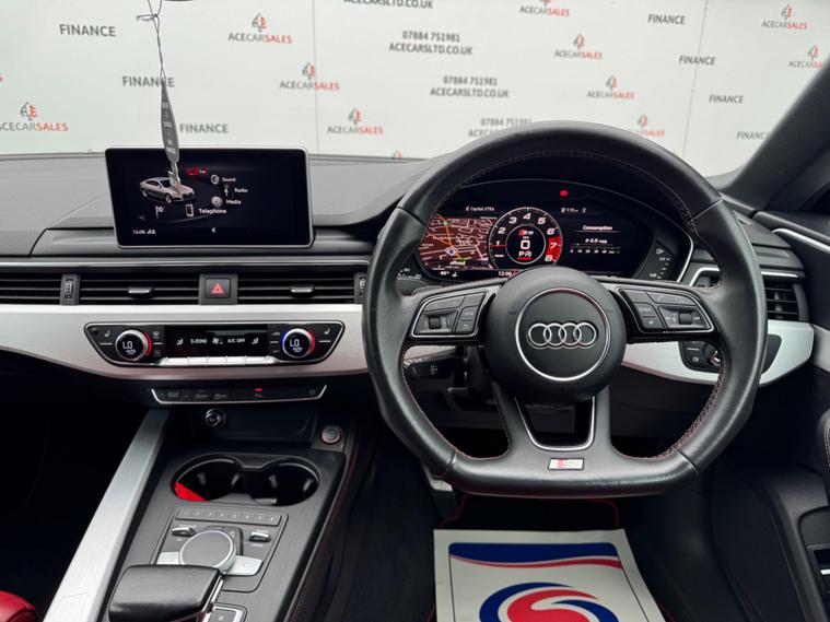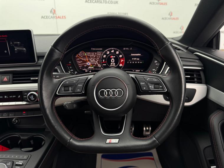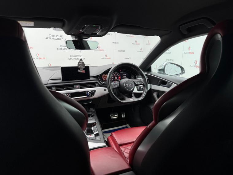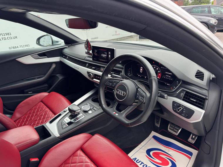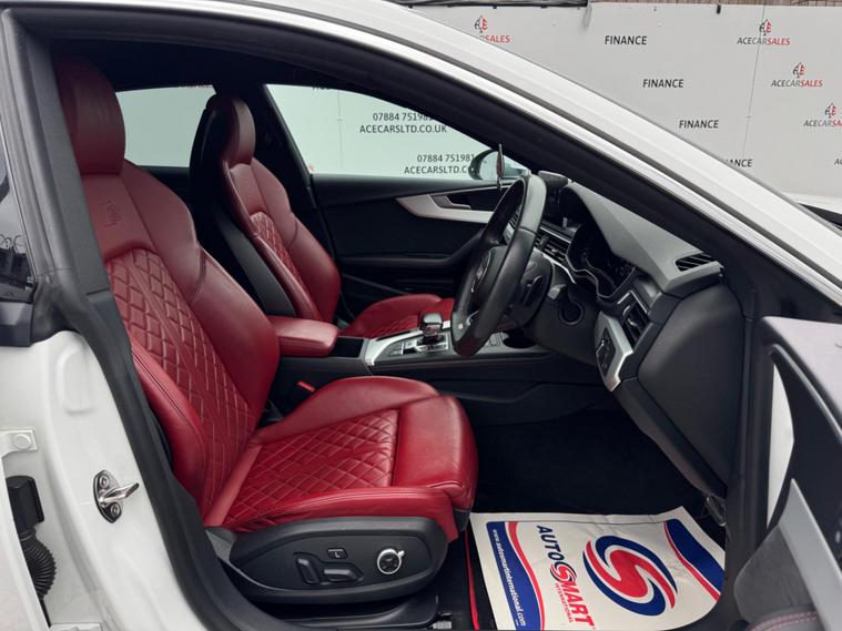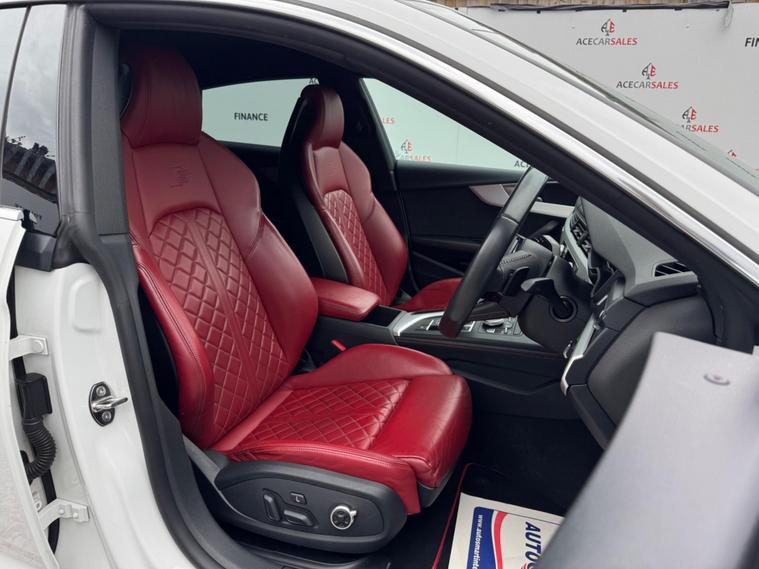 FINANCE & PCP AVAILABLE, COMPLEMENTARY WARRANTY INCLUDED, GOOD CONDITION, WE TAKE PART EXCHANGE! Audi S5 3.0 TFSI V6 Sportback Tiptronic quattro Euro 6 (s/s) 5dr. HPI Clear, Full Service History Audi Specialists, 9 Months MOT, 2 Owner, 2 Keys, EURO6 ULEZ Compliant, Virtual Cockpit, Massage Front Seats, Cruise Control, Speed Limiting Function, Start/Stop Function, Audi Pre-Sense City, Multi Collision Brake Assist, Rest Recommendation System, S Sport Suspension, S Model Enhanced Braking System, Speed Warning, Efficiency Assist, Drive Select Modes Efficiency/Comfort/Auto/Dynamic/Individual With Optional Drive Settings, Paddle Shifts, Sport Gearbox Mode With Manual Shifting, QUATTRO, Traction Control, Electronic Stabilisation Control, Electronic Differential Lock, Anti-Slip Regulation, Electromechanical Parking Brake, Tyre Pressure Monitoring System, Electric Windows, Electric Mirrors, Electric Opening/Closing Boot, 4-Way Electric Lumbar Support, Electric Front Seats, Automatic Headlights, High-Beam Assist, LED Headlights, LED Rear Lights, Dynamic Rear Indicators, LED Interior Light Package, Front Heated Seats, Automatic Dual Zone Climate Control, Air Conditioning, Front And Rear Screen Demisters, 7inch Colour Screen Media Interface, Virtual Cockpit S Instrument Dials - Changing Displays, Drivers Information Display, Drivers Information Display With Maps, Audi Connect, Audi Sound System, Apple Carplay/Android Auto, Navigation, Traffic Information, Bluetooth, Radio, DAB, USB, Telephone Connection, Voice Control, Multifunctional Steering Wheel, Full Leather S Quilted Seats In Red, Quattro Design Interior Trims, Aluminium Design Interior Trims, S Line Design Illuminated Door Sills, Privacy Glass, S5 Exterior Badging, S5 Design Exterior Trims, Aluminium Design Mirrors, 19inch Alloy Wheels.ALL VEHICLES ARE FULLY INSPECTED PRIOR TO SALE. Feel free to enquire about our competitive Financial packages. We include a COMPLEMENTARY WARRANTY on all our vehicles. Be our next happy customer today! dealer's website