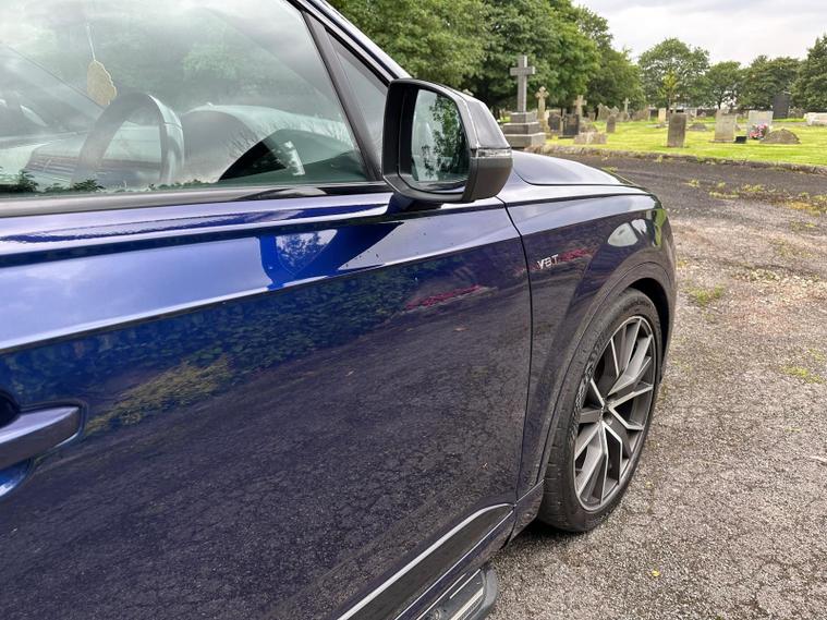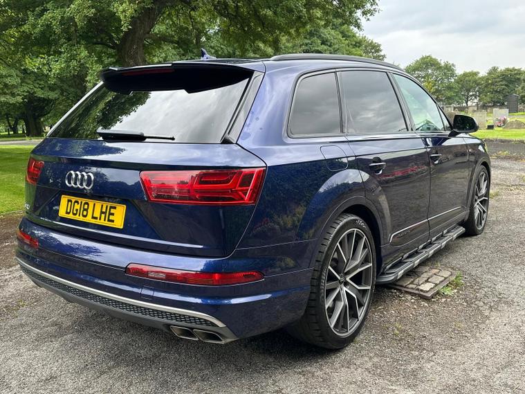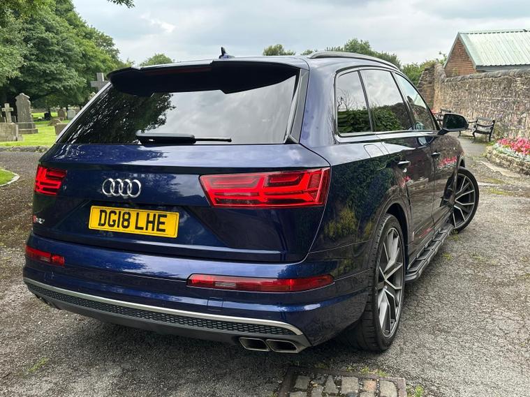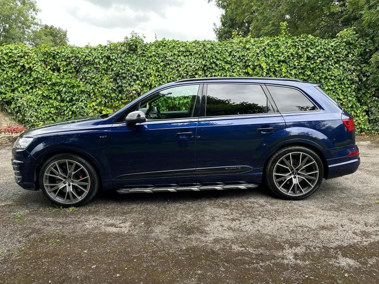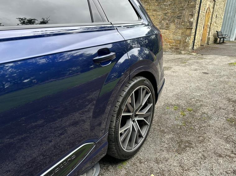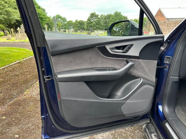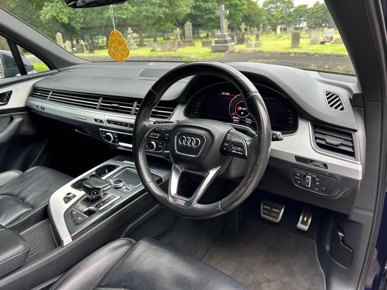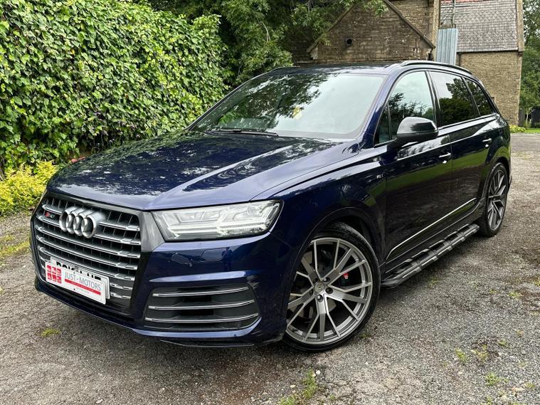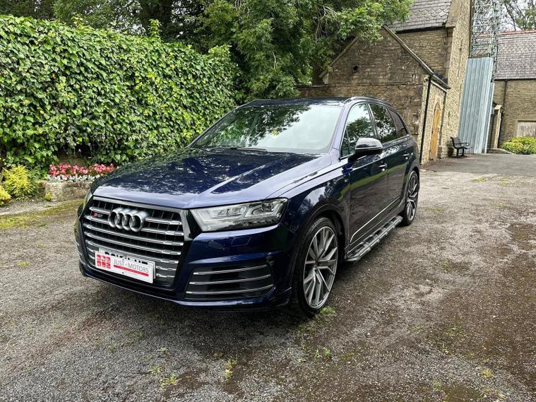 AUDI SQ7 4.0 TDI V8 TIPTRONIC QUATTRO IN A BLUE EXTERIOR COLOUR WITH BLACK LEATHER INTERIOR... A SPACIOUS 7 SEATER VEHICLE... COMES WITH A LONG MOT... FRESH SERVICE DONE... FEATURING FRONT AND BACK PARKING SENSORS... XEON LIGHTS... ELECTRIC OPENING BOOT WITH BOOT RELEASE SWITCH... MULTIFUNCTION STEERING WHEEL WITH RADIO CONTROLS AND PADDLE SHIFT... ELECTRIC ADJUSTABLE FRONT SEATS... PRIVACY GLASS... PUSH BUTTON START... RADIO WITH BLUETOOTH CONNECTIVITIY AND NAVIGATION... DRIVE SELECT... AUTO STOP /START... CLIMATE CONTROL WITH BACK HEATED WINDOWS... HEATED FRONT SEATS... ELECTRIC HANDBRAKE WITH AUTO HOLD... ALL ROUND ELECTRIC WINDOWS... CENTRAL LOCKING DOOR CONTROLS... ELECTRIC ADJUSTABLE SIDE FOLDING MIRRORS... NEW ALLOYS WHEEL... WARRANTY INCLUDED... ALL PART EXCHANGES ARE WELCOME... OPTIONAL NATIONWIDE DELIVERY EXTRA... BOOK-INS AND VIDEO VIEWINGS AVAILABLE... TEST DRIVES ARE WELCOME... FOR MORE INFORMATION CALL US TODAY ON 01616232309. CAT S BACK IN DECEMBER 2024.