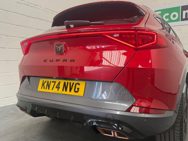 With only one previous owner, this 2024 CUPRA Formentor eHybrid V2 is a great choice. This model features a 1.4L Petrol Plug-in Hybrid Engine and complies with Euro 6 emission standards. The V2 trim includes practical features such as Daytime Running Lights with Automatic Headlight Control and Coming-Leaving Home Lights, ensuring visibility and convenience. The LED Headlights provide enhanced illumination for safer driving. Inside, you'll find a Leather Multi-function Heated Steering Wheel with Gear Shift Paddles, adding a touch of luxury and control. Stay connected on the go with the Wireless Phone Charger, and manoeuvre with ease using the Rear View Camera.The CUPRA Formentor eHybrid V2 stands out with its blend of efficiency and premium features. The automatic headlights are a great addition, making driving easier. The heated steering wheel is a welcome comfort during colder months. Wireless phone charging keeps your devices powered without the clutter of cables. The rear camera is a great safety feature, making parking in tight spots easier and safer..