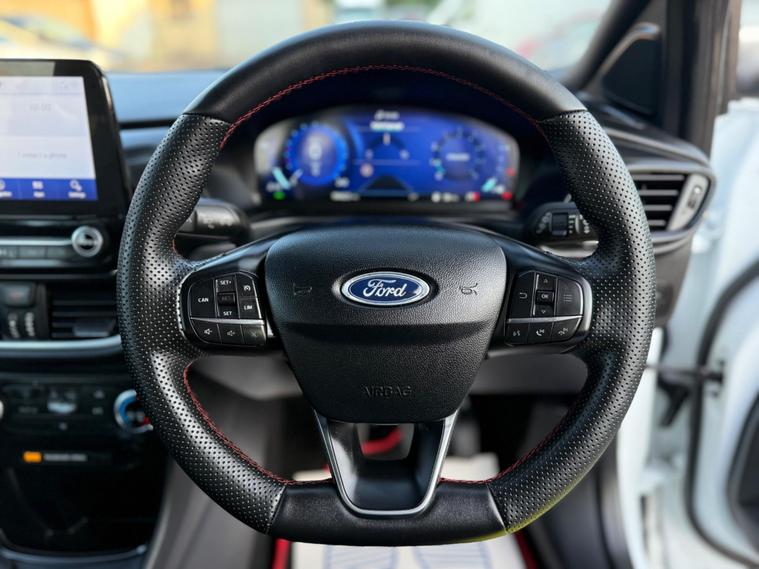 - ST-Line Flat-Bottomed Leather Steering Wheel with Unique Red Stitching