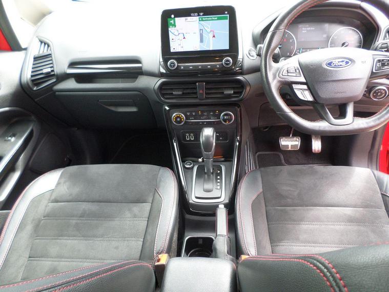 This 2018 Ford EcoSport is a stylish and practical choice. As a ST-Line trim, this EcoSport boasts sporty ST-Line bumpers and side skirts, setting it apart from the standard model. Equipped with a 1.0L petrol engine and meeting Euro 6 emission standards, this EcoSport T ST-Line offers a blend of performance and environmental consciousness. The interior features Electronic Automatic Temperature Control (EATC), ensuring a comfortable climate, and a centre console with a sliding armrest for added convenience. Stay connected and entertained with the Ford DAB Navigation System with Ford SYNC3, offering Android Auto, Apple CarPlay, and Bluetooth connectivity.The Ford EcoSport stands out with its impressive fuel economy of 46 mpg, meaning fewer trips to the petrol station. The inclusion of a rear view camera with rear parking sensors, complete with parking assistance, makes maneuvering in tight spots a breeze. This feature enhances safety and convenience, making the EcoSport a smart choice for urban driving and beyond..