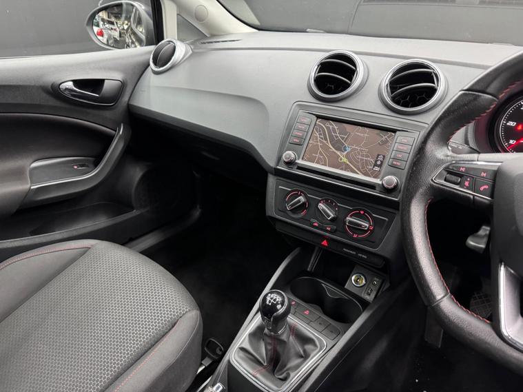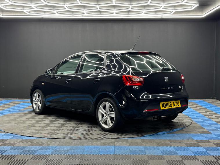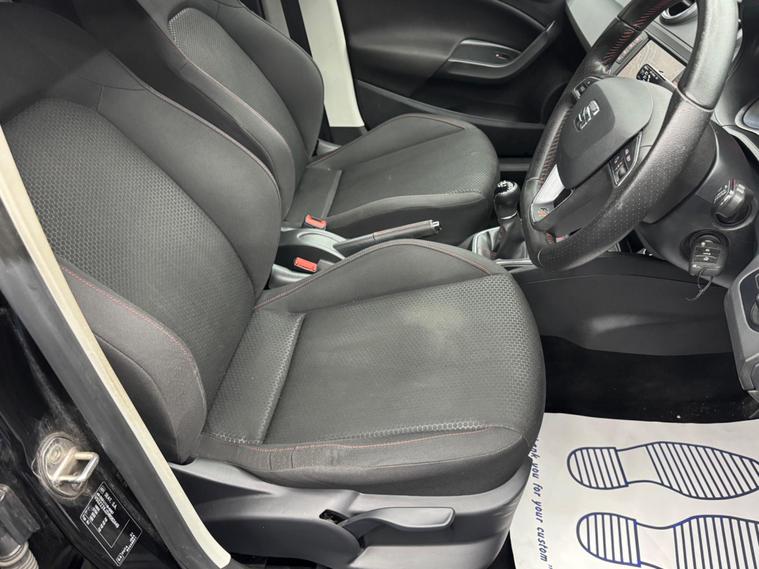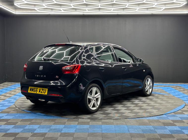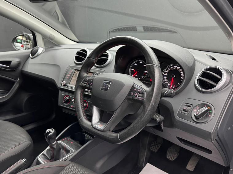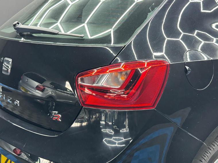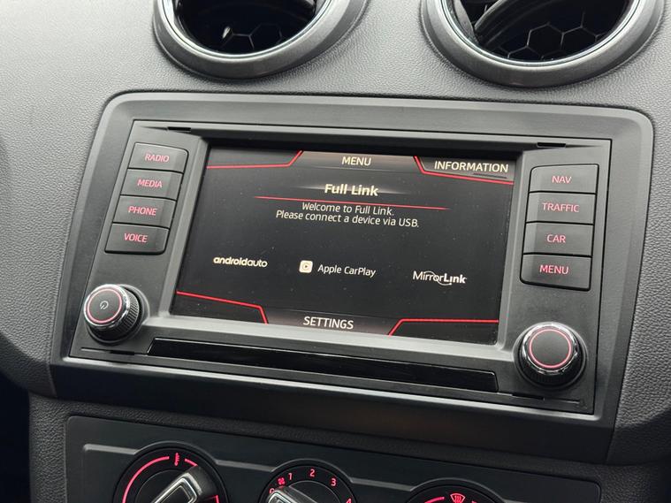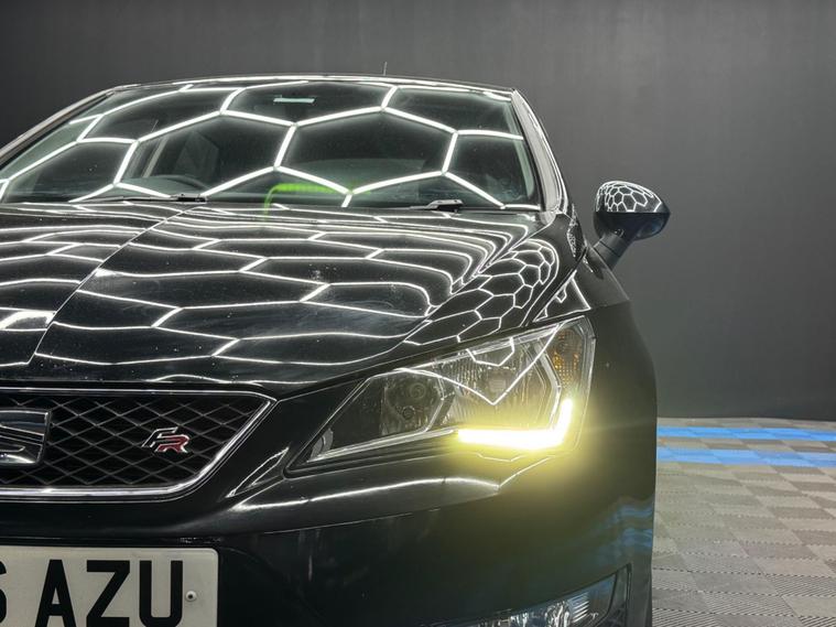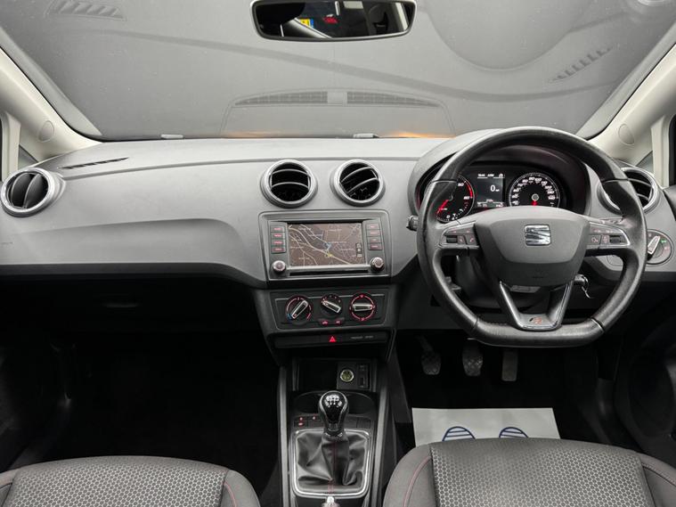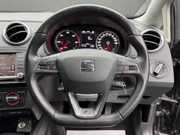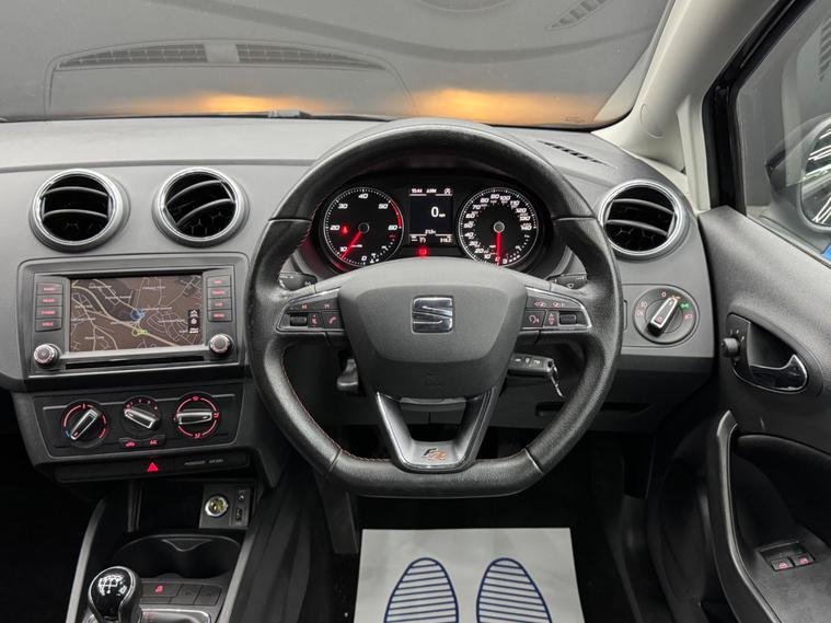 Here at Motor Gurus we are delighted to offer a SEAT Ibiza 1.4 TDI FR. This vehicle is in immaculate condition inside and out. This specific vehicle is finished in a GLOSS BLACK and is matched with a BLACK CLOTH interior. This vehicle comes included with: REAR PARKING SENSORS, PERFORATED GRIPPED LEATHER STEERING WHEEL, CRUISE CONTROL, AUTOMATIC HEADLIGHT CONTROL, TWIN CUPHOLDERS, CLIMATE CONTROL, SAT NAVIGATION, BLUETOOTH AUDIO, TELEPHONE CONNECTIVITY, VOICE COMMANDS, TYRE PRESSURE MONITOR, APPLE CARPLAY AND MUCH MORE! Our SEAT Ibiza 1.4 TDI FR is ONLY £20 TAX a 1 FORMER KEEPER FROM NEW! We will also provide this vehicle with a 12 MONTH MOT as well as a FRESH OIL SERVICE before it leaves our premises (OTR)..