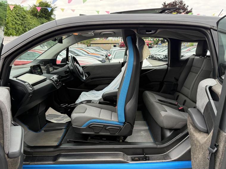 With only one owner and low mileage of just 36000 miles, this 2015 BMW i3 represents a great find. This electric vehicle, with its 22 kWh battery, offers an eco-friendly driving experience. It comes with a partial service history and a warranty of 3 months for added peace of mind. The MOT is valid until June 2026. Enjoy enhanced comfort and convenience with features such as the electric glass sunroof, automatic single-zone air conditioning with climate control, and rear park distance control with parking assistance. Stay connected on the go with Bluetooth hands-free connectivity and a USB audio interface.The BMW i3 stands out with its impressive acceleration, reaching 0-62mph in just 7.2 seconds. The battery provides a maximum range of 100 miles when new, and a full charge at home using a 7kW charger takes only 3 hours. This makes it a practical choice for daily commutes and urban driving..