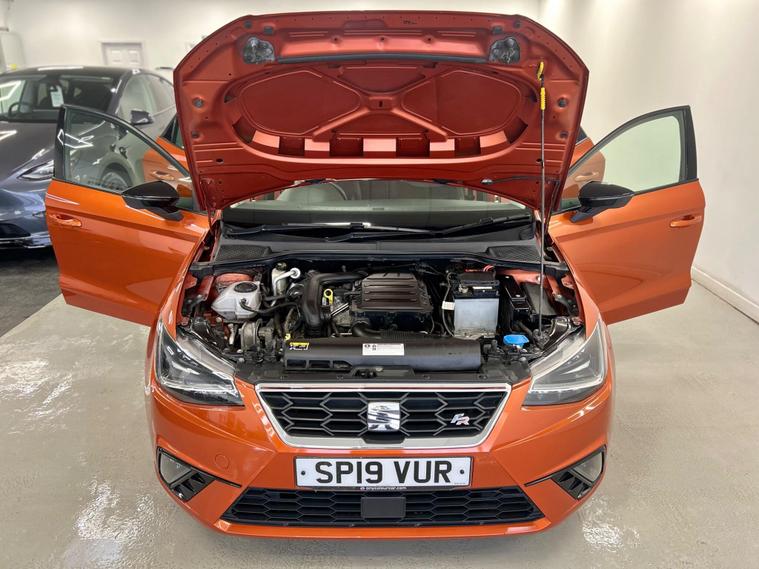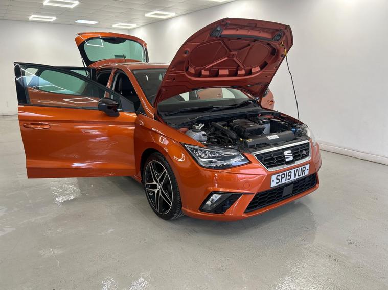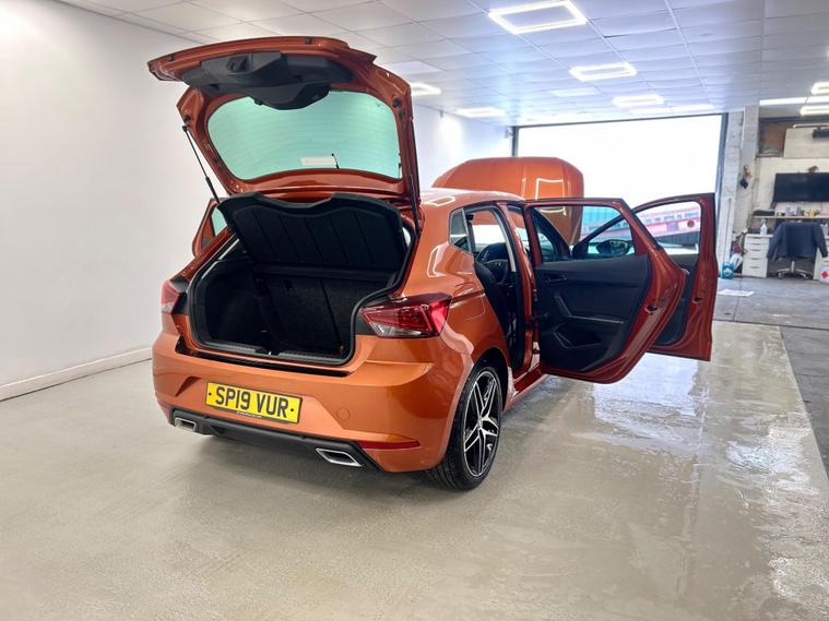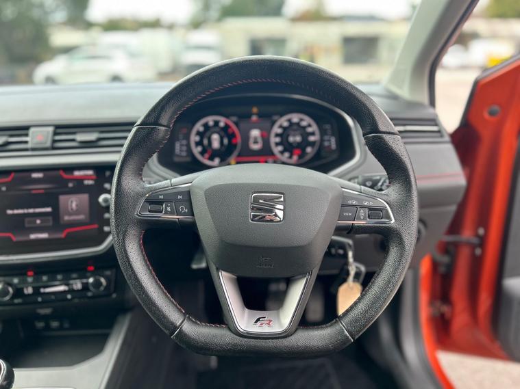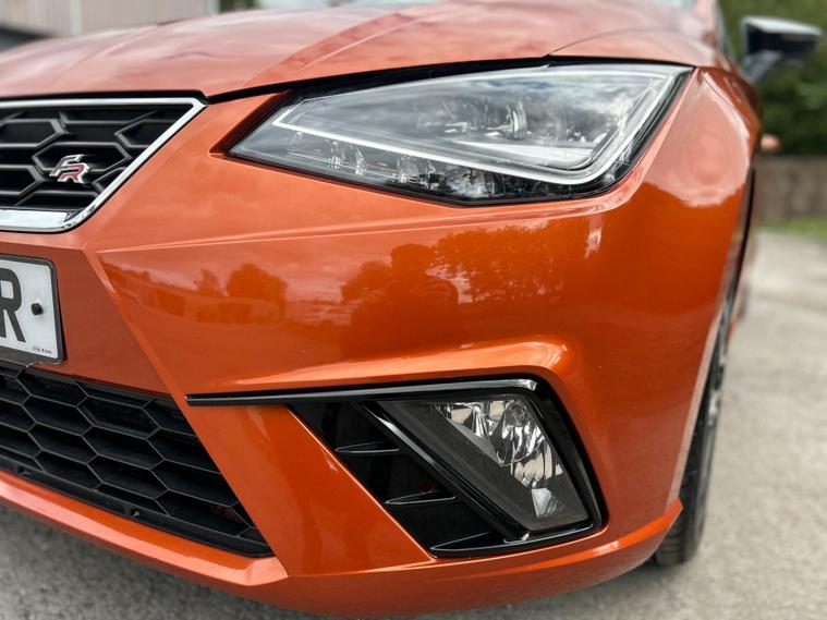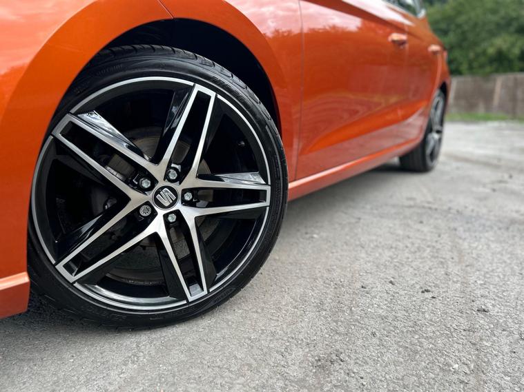 We are delighted to present this stylish and sporty SEAT Ibiza 1.0 TSI FR Sport Euro 6 (s/s) 5dr GPF, finished in striking Eclipse Orange Metallic. A standout colour that perfectly highlights the sharp lines and dynamic character of the Ibiza, this hatchback offers the perfect blend of everyday practicality and sporty flair.On the exterior, this FR Sport model is equipped with stunning 18-inch diamond cut alloy wheels, enhancing its bold road presence. The electric folding wing mirrors add both convenience and a sleek finish, while the FR styling pack gives it a performance-inspired look.Step inside and you’ll find a premium cabin trimmed in leather and Alcantara upholstery, offering both comfort and a sporty edge. The multifunctional steering wheel places controls at your fingertips, while cruise control makes longer journeys effortless. The dual climate control system ensures personalised comfort for both driver and passengers.Technology is a key strength of this Ibiza, with a fully digital dashboard providing clear and customisable driving information. The touchscreen infotainment system integrates Apple CarPlay and Android Auto, keeping you seamlessly connected on the move.For driving dynamics, this FR Sport benefits from multiple driving modes, allowing you to tailor the car’s performance and responsiveness to your preference, whether cruising efficiently or enjoying a more spirited drive.Overall, this SEAT Ibiza FR Sport combines bold styling, advanced technology, and driver-focused features, making it a fantastic choice for those who want a hatchback that’s both practical and fun to drive..