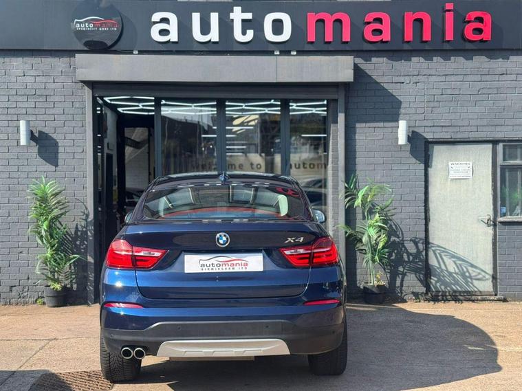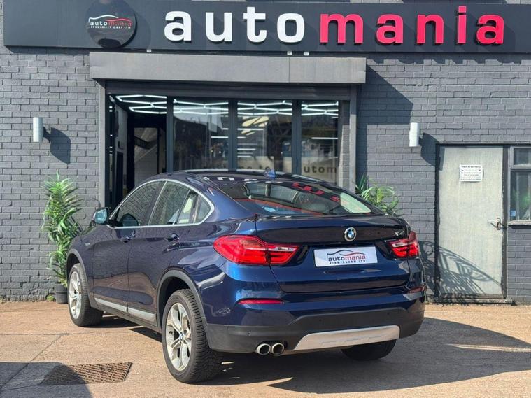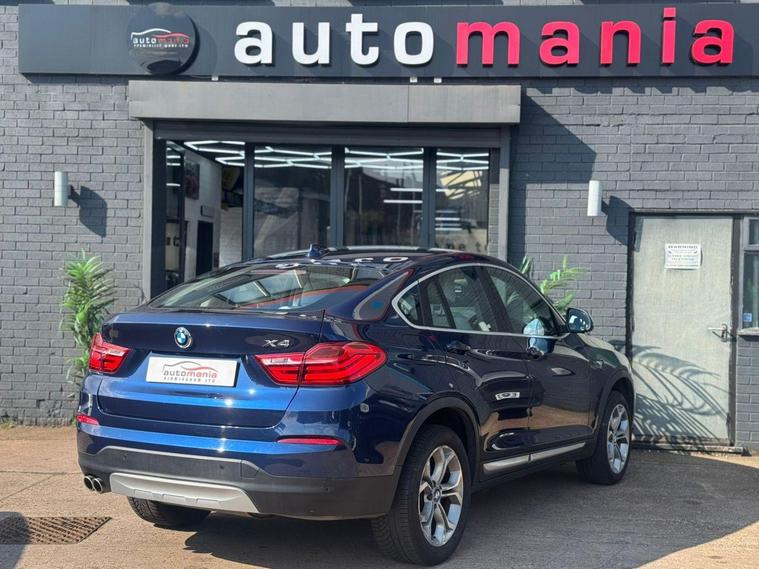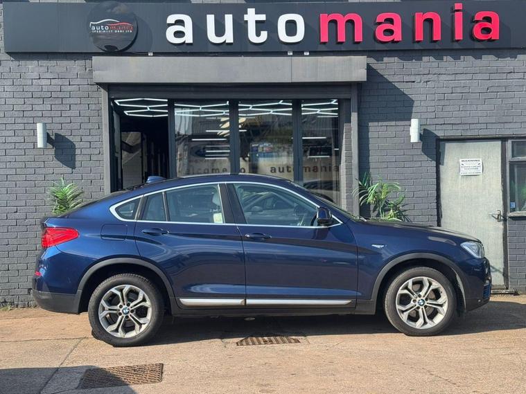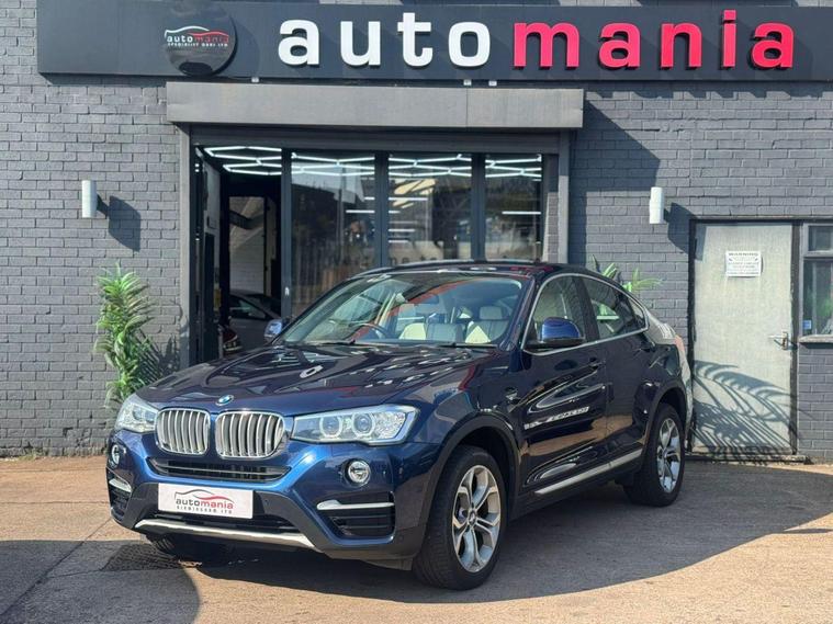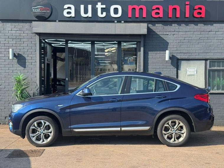 2016 BMW X4 finished in Metallic blue with Low Miles & Economically Friendly. this car is a well Equipped Great First or City Car. Includes Interior Features such as; Adjustable Head Restraints, Air Conditioning, Bottle Holders - Front Centre Console and Door, Bottle Holders - Rear Door, Door Courtesy Lights, Driver and Passenger Sun Visor with Ticket Holder, Driver Seat Height Adjustment, Front Door Pockets, Height Adjustable Steering Column, Luggage Compartment Light, Rear Door Pockets, Split Folding Rear Seats - 60-40, Sun Visors with Vanity Mirrors Exterior Features, Allow wheels, Door Handles - Body Coloured, Door Mirrors - Body Coloured, Electric Adjustment and Heated Door Mirrors, Electric Windows - Front and Rear, One Touch Down Drivers Window Control, Rear Spoiler with Integrated Brake Light, Tyre Repair Kit Other Features and Key Information 12V Power Outlet - Front x2, Cruise Control with Speed Limiter, Daytime Running Lights, Power Assisted Steering, RDS Radio-CD Player with MP3 Compatibility, Speakers x2, Trip Computer, Tyre Pressure Monitoring System - TPMS, USB and AUX Connections, ABS - Anti-Lock Brake System, Airbags - Driver, Airbags - Front Passenger, Airbags - Front Side, Airbags - Full Length Curtain, BAS - Brake Assist System, Childproof Rear Door Locks, ESP - Electronic Stability Programme, Front and Rear Seatbelt Reminder, Front Passenger Airbag De-Activation Switch, Immobiliser, ISOFIX Child Seat Anchorage Points - Rear - Outer Rear, Remote Central Locking. *NO HIDDEN ADMIN FEES* 1 YEAR AA BREAKDWON COVER* MINIMUM 3MM TYRE DEPTH, *NO EXTRA CHARGE FOR OUR 3 MONTHS WARRANTY *NO FUEL CHARGES *NO SURCHARGE FOR CREDIT CARDS We supply our vehicles with a Minimum 9 MONTHS MOT Test. If the vehicle requires a service in the next 3 months or 3000 MILES (WHICHEVER COMES SOONEST) we will service the vehicle before delivery. We are fully authorised & Regulated by the Financial Conduct Authority (FCA) and can offer a wide range of finance products and advice. Please visit our website at dealer's website to find out more about us and detailed directions to our site also view our full range of stock. With Over 65 similar cars always available..