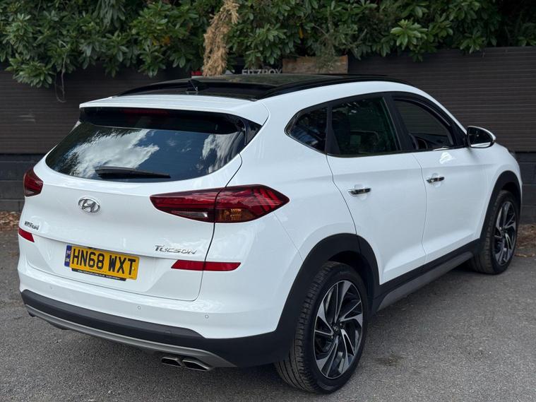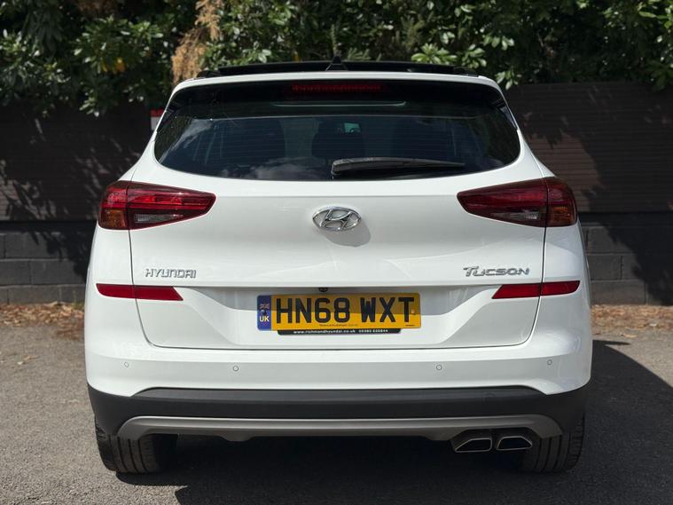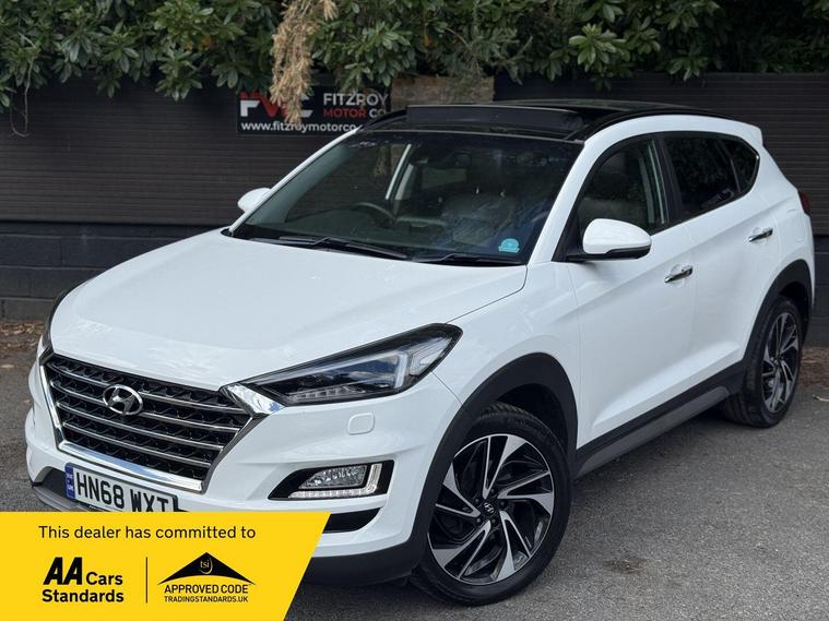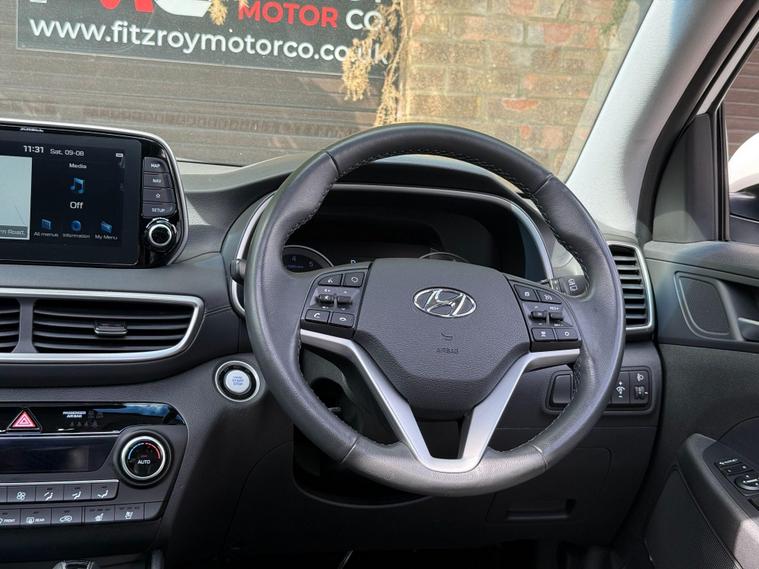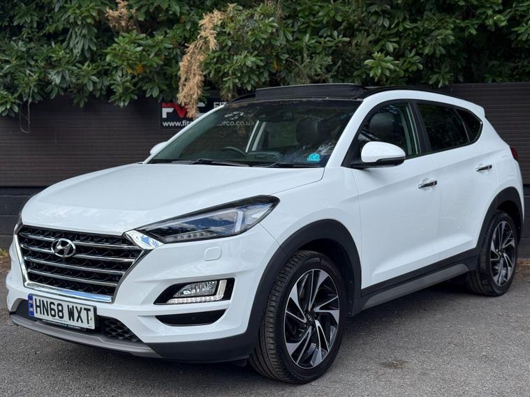 We are delighted to offer this Hyundai Tucson 1.6 Petrol Premium Automatic, a high-specification SUV with just 1 owner from new and a full service history. This example has been extremely well cared for and is presented in superb condition throughout.Finished in a stunning white, complemented by diamond cut alloy wheels and rear privacy glass, this Tucson has a smart and modern road presence. The bodywork is in excellent order, reflecting the care it has enjoyed since new.Inside, the cabin impresses with black leather seats featuring electric adjustment, heated and cooled functions, and a heated steering wheel for year-round comfort. It also benefits from upgraded speakers and a panoramic roof with sunshade that floods the interior with light. This model comes with a rare adaptive cruise control with limiter, Apple CarPlay, Bluetooth audio, handsfree calling, DAB/FM/AM radio, and a 360° camera for all-round visibility.Safety and convenience features include front and rear parking sensors, blind spot assist, and an electric tailgate. On the road, the Tucson offers a smooth and refined drive, with the automatic transmission making it ideal for both town and motorway journeys.A fantastic opportunity to own a well-specified, one-owner premium SUV, ready for its next keeper to enjoy.At Fitzroy Motor Co, all our vehicles are HPI clear, mechanically inspected, and supplied with a fresh 12-month MOT where required. We also offer nationwide delivery from £149 and finance options from 10.9% APR with £0 deposit available.Part exchange welcome – contact us today to arrange a viewing or test drive.Call us on 01425318542..