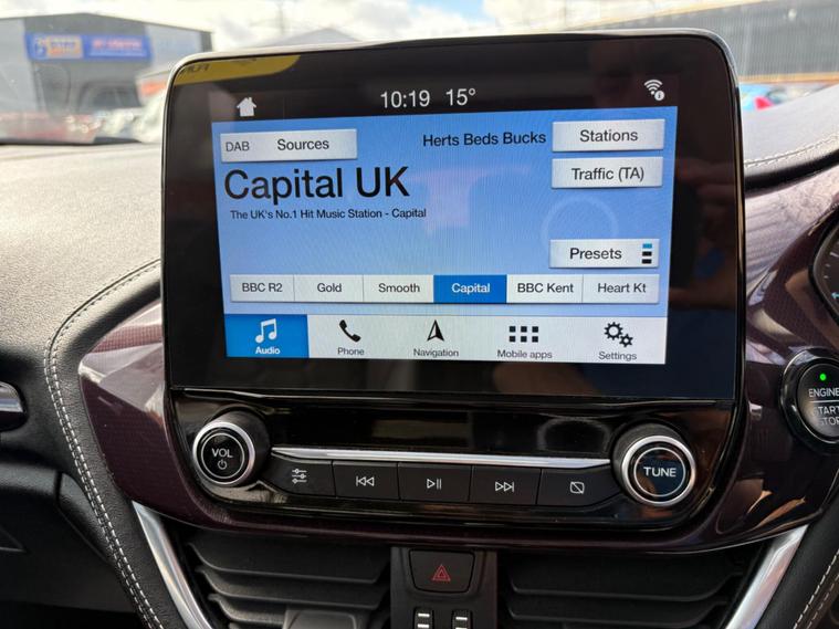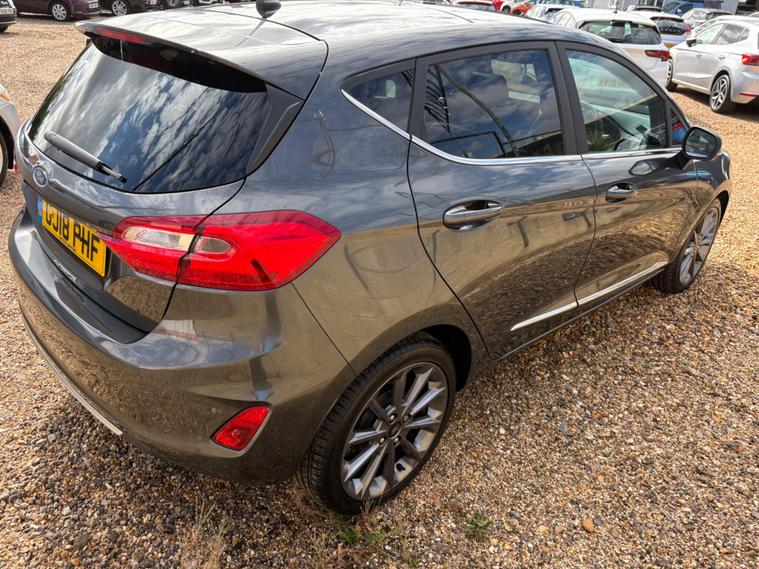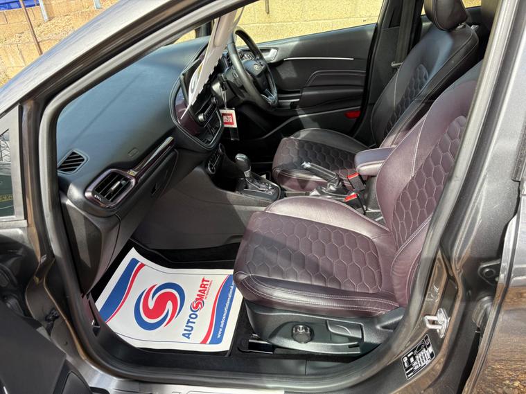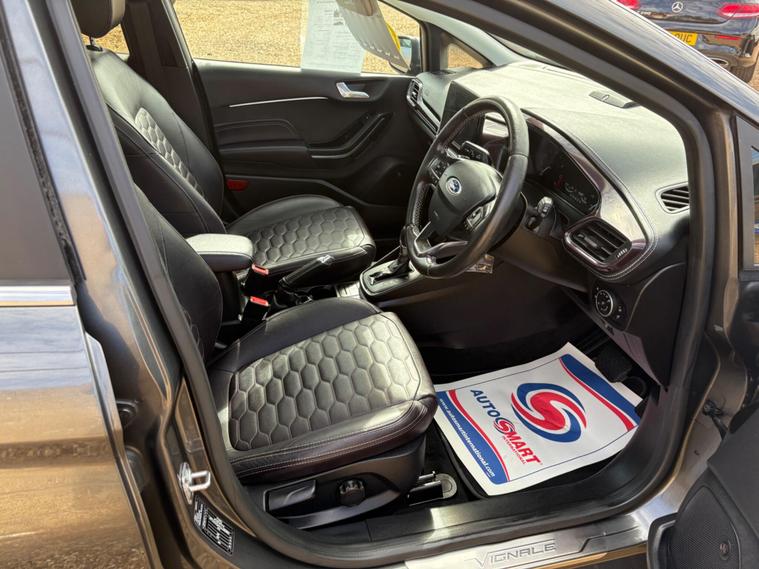 With only 31, 465 miles on the clock, this 2018 Ford Fiesta is offered with a full service history. As a Fiesta T Vignale in the Vignale trim, this model features a 1.0L petrol engine and meets Euro 6 emission standards. For added peace of mind, it also comes with a 3-month warranty.The car is equipped with several features that set it apart. The heated steering wheel ensures comfort during colder months, while the B and O PLAY in-car audio system, complete with Ford SYNC 3 Navigation, Android Auto, and Apple CarPlay, provides a premium entertainment and connectivity experience. The electronic automatic temperature control, or EATC, includes climate control, maintaining a comfortable cabin environment. The NCAP Pack, which includes automatic headlights, enhances safety, and the Ford KeyFree System offers keyless entry for added convenience..
