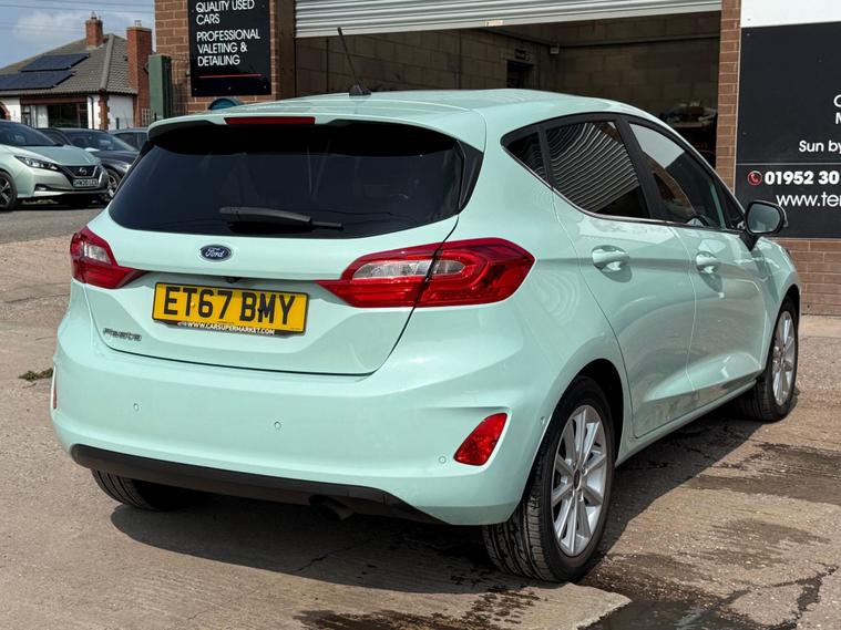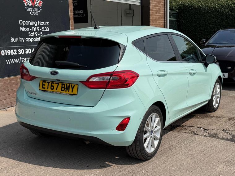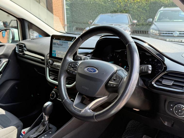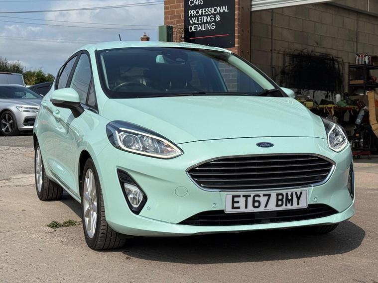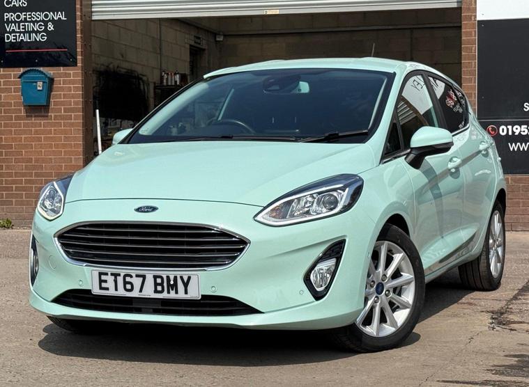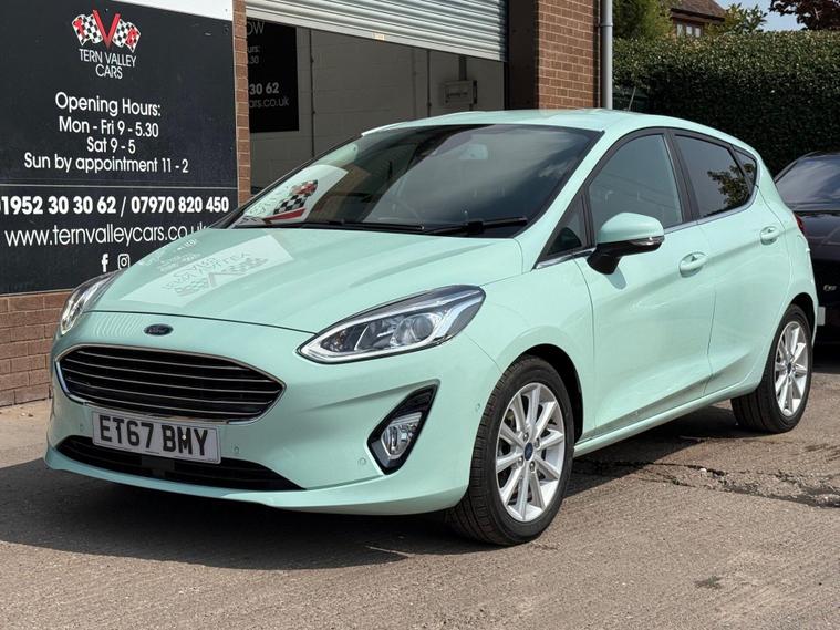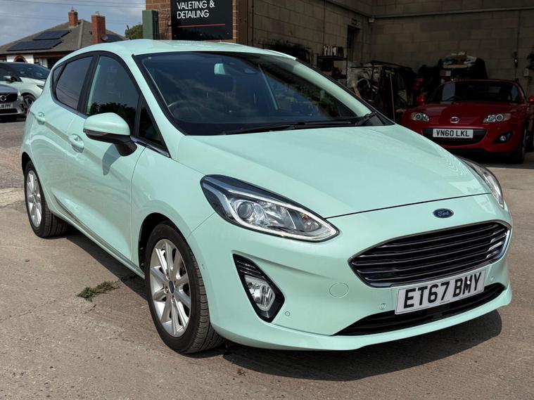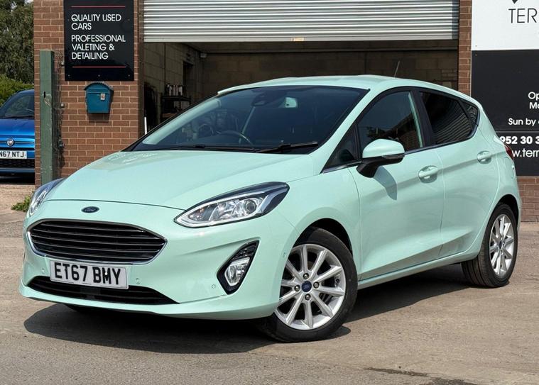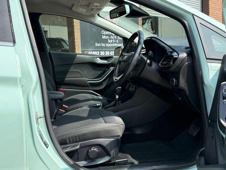 With a full service history, loads of features on this low miles B & O special edition of just 40772 miles, this 2018 Ford Fiesta 1.0L Petrol Turbo Titanium B&O Play Series in the Titanium B&O Play Series trim, is a great option as a very rare special edition automatic car to find in the sought after stunning colour Bohai Bay Mint Exclusive Metallic paintwork. It boasts a Euro 6 emission class, and for peace of mind, it comes with a 6-month warranty. You'll also receive an annual service completed, now has new MOT to 10/09/26, ensuring it's road-ready. Good specification cars with B & O bespoke speaker system, Satnav DAB Radio & upgrade CD player, reverse camera and parking assistance. Aircon and electric front windows, lane assist & cruise control. Tiptronic steering wheel (manual style) gear change. Stay connected on the go with smartphone integration, supporting both Android Auto and Apple CarPlay. Wireless charging ensures your devices are always ready to use. Great spec small car with easy entry/exit access. All handbooks. 2 x keys. We sell with 6 Months Warrantywise Platinum Warranty. 12 Months AA Breakdown Membership included. AA Driveaway 5 Day Insurance available - Only £44.99 NEED FINANCE? No Problem - SAF Registered. Simply click 'Apply for finance' on our website dealer's website We are a FCA registered dealership. Prime or subprime finance. Excellent finance rates starting from as low as 11.1% APR (Subject to status and terms and conditions) For any further information and details to view please contact David, who has over 50 years personal Motor trade experience! Delivery to your door is available, please ask for a quoteThe Advanced Auto Park Assistance Pack 1, including front & rear parking sensors and a rear camera, makes parking a breeze. The convenience of electronic automatic temperature control (EATC) with climate control and a CD player add to the driving experience. The last service was carried out on 2024-01-23 at 37647 miles. These features combine to make this vehicle a compelling choice when compared to similar models..